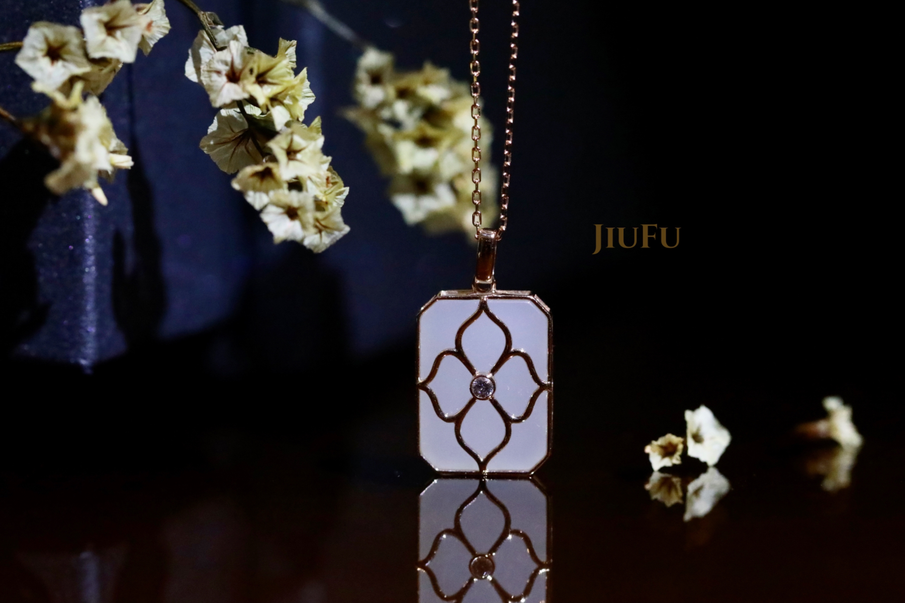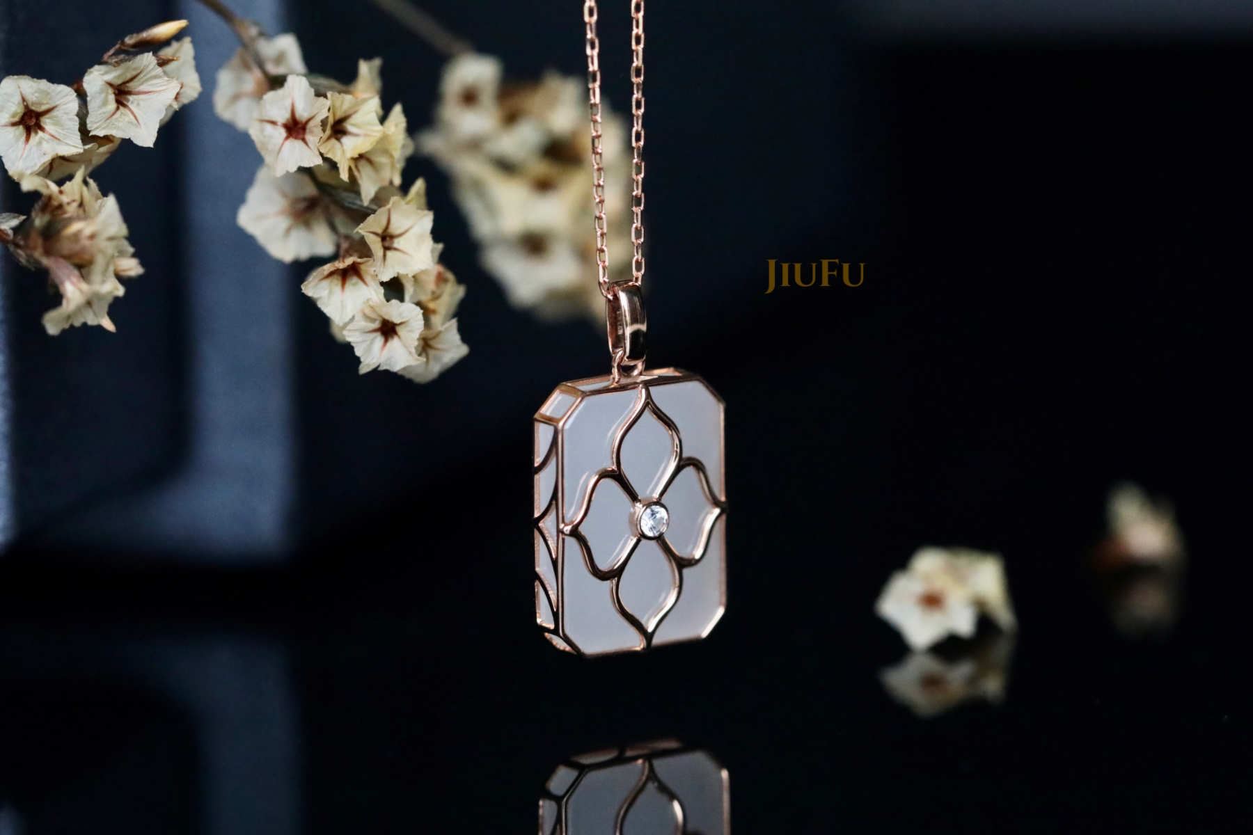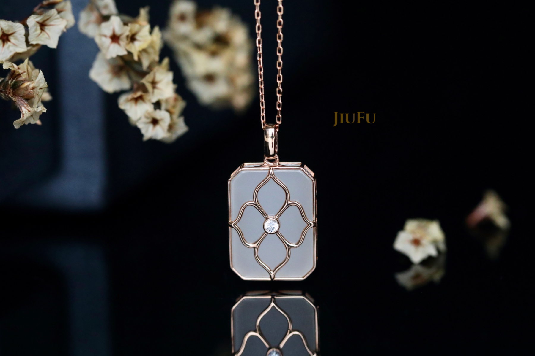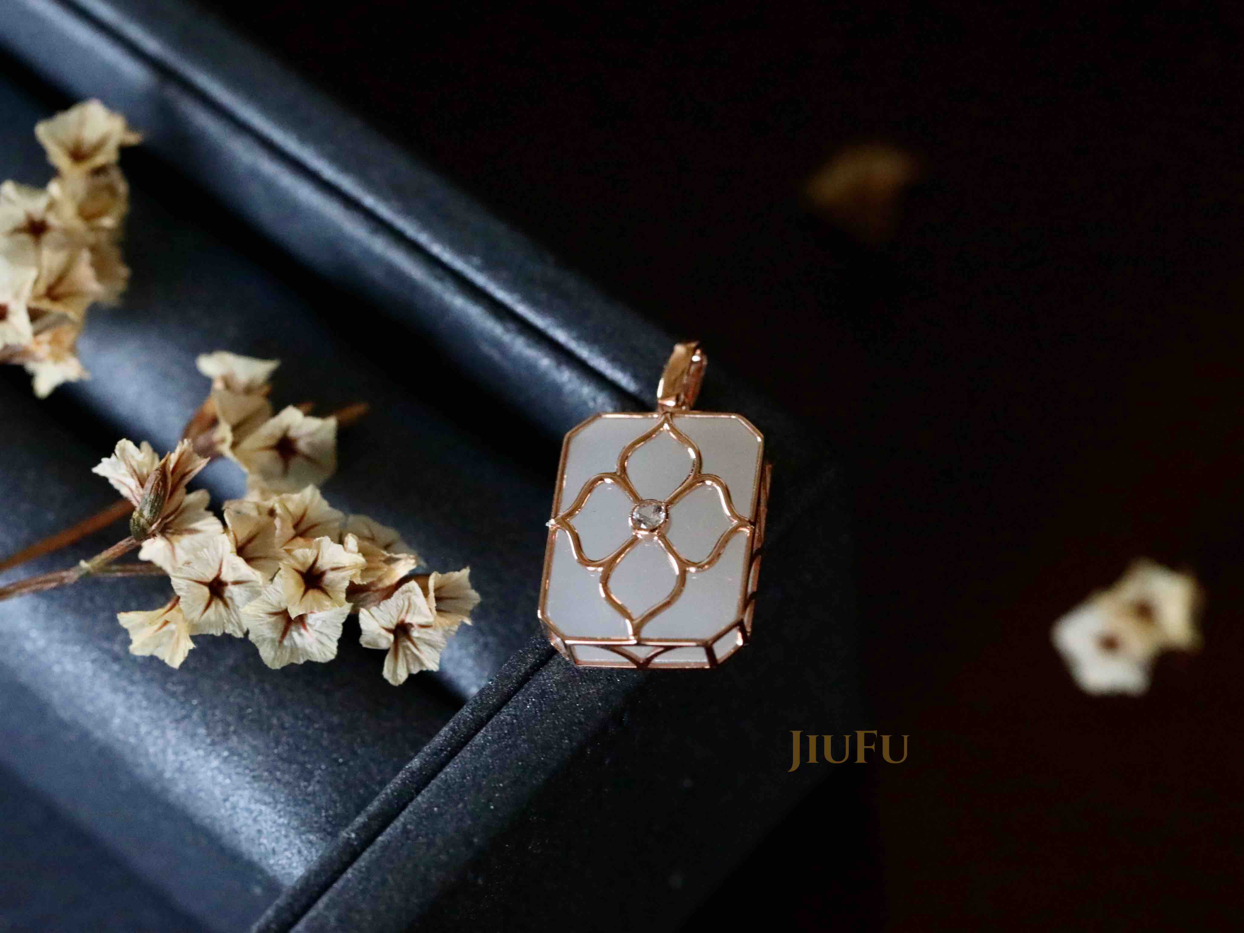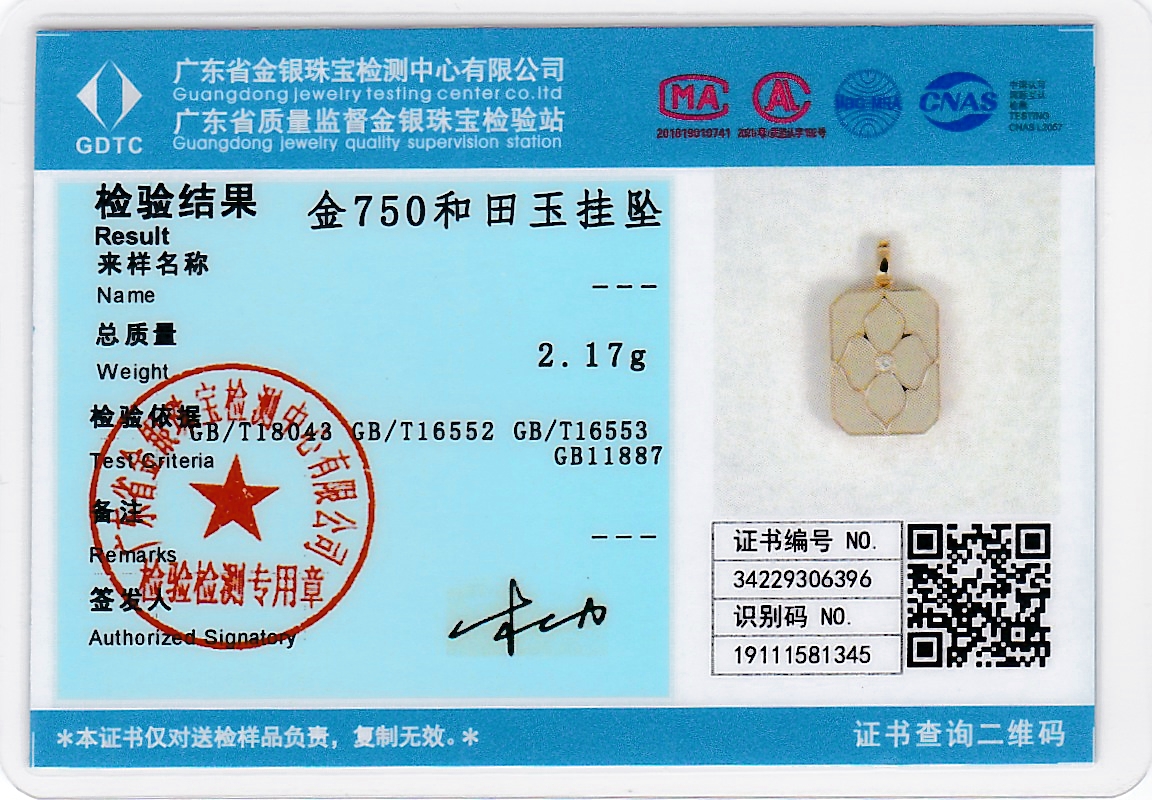 18k玫瑰金和田玉(白玉)吊坠