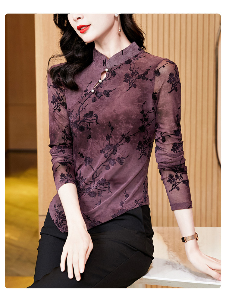 中式气质百搭植绒长袖网纱打底衫修身显瘦K-E37M2938