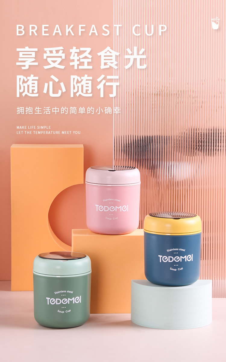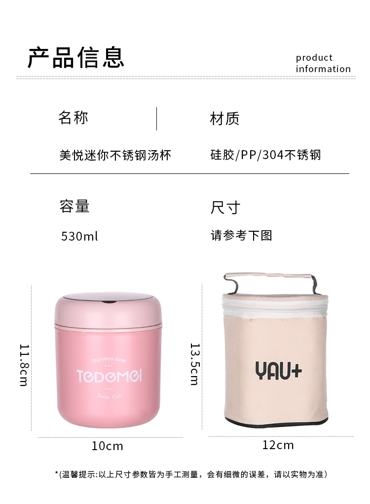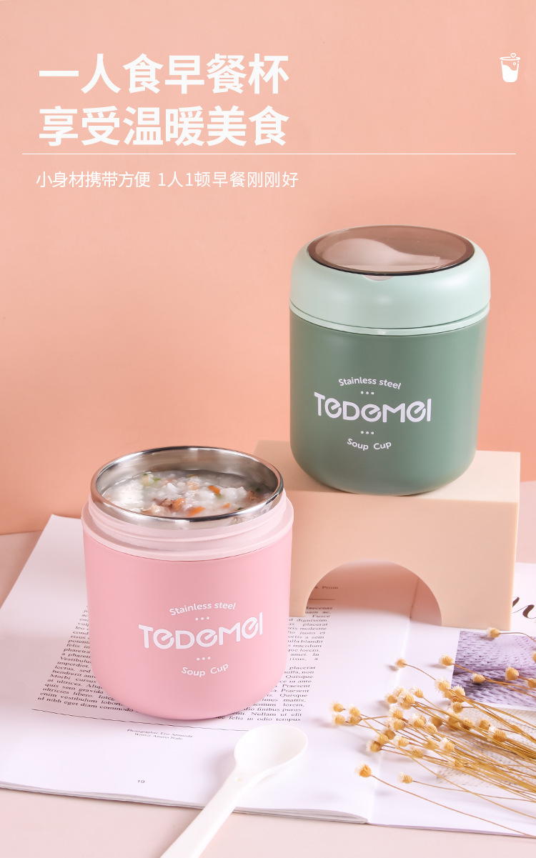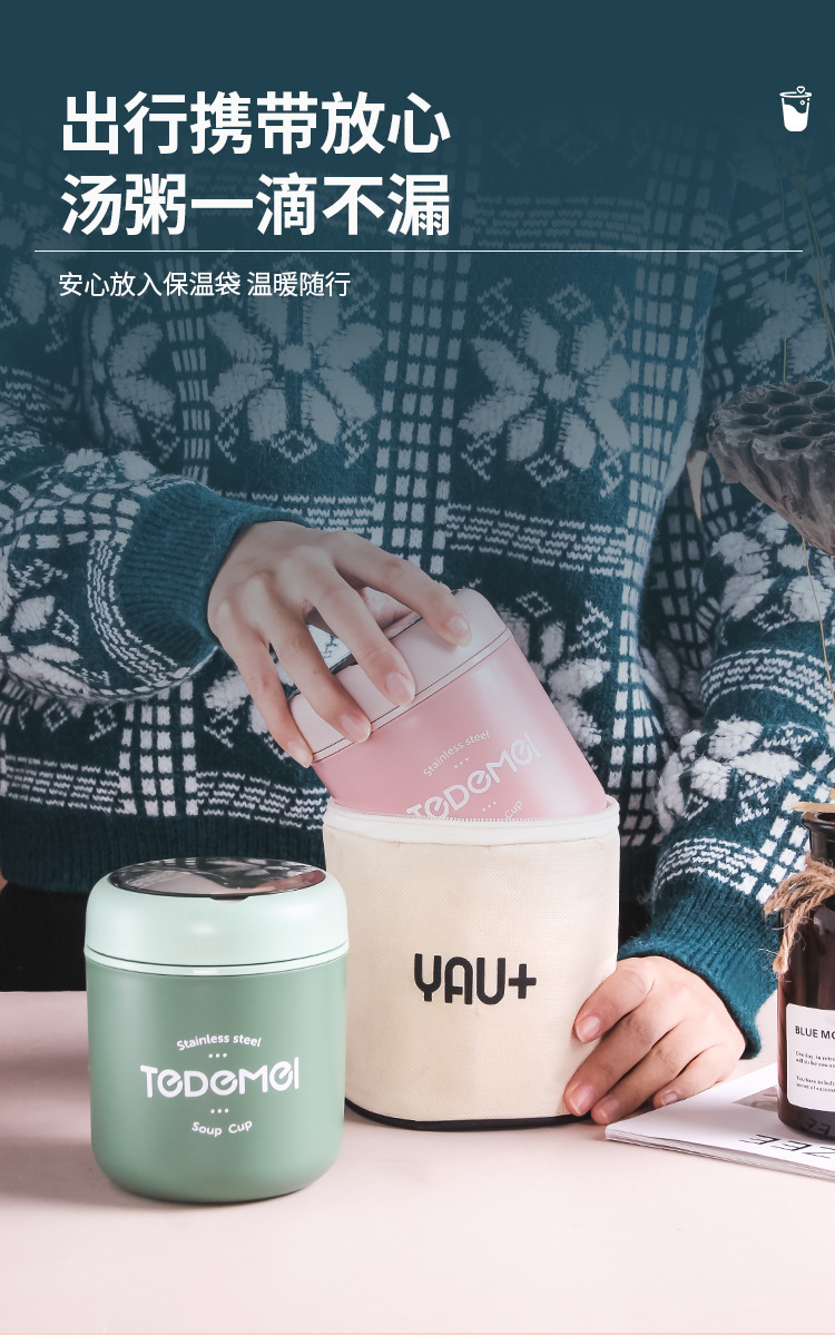 304不锈钢汤杯 早餐汤罐上班便当盒午餐盒手提便携水杯子-M仓