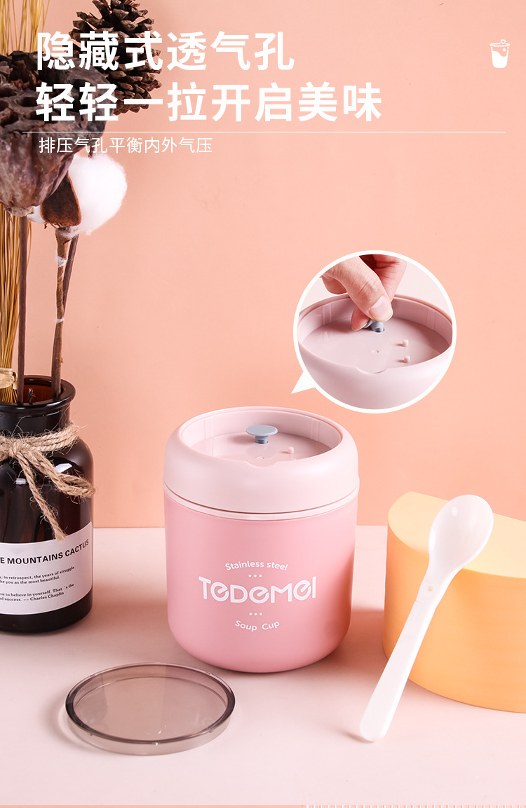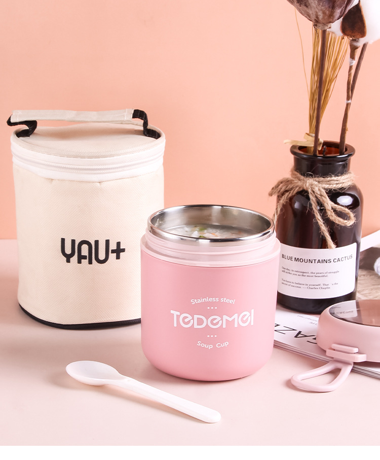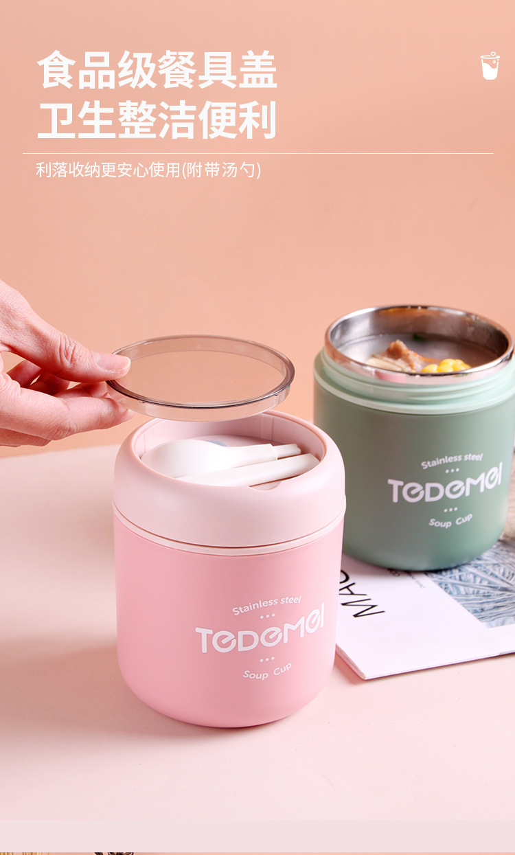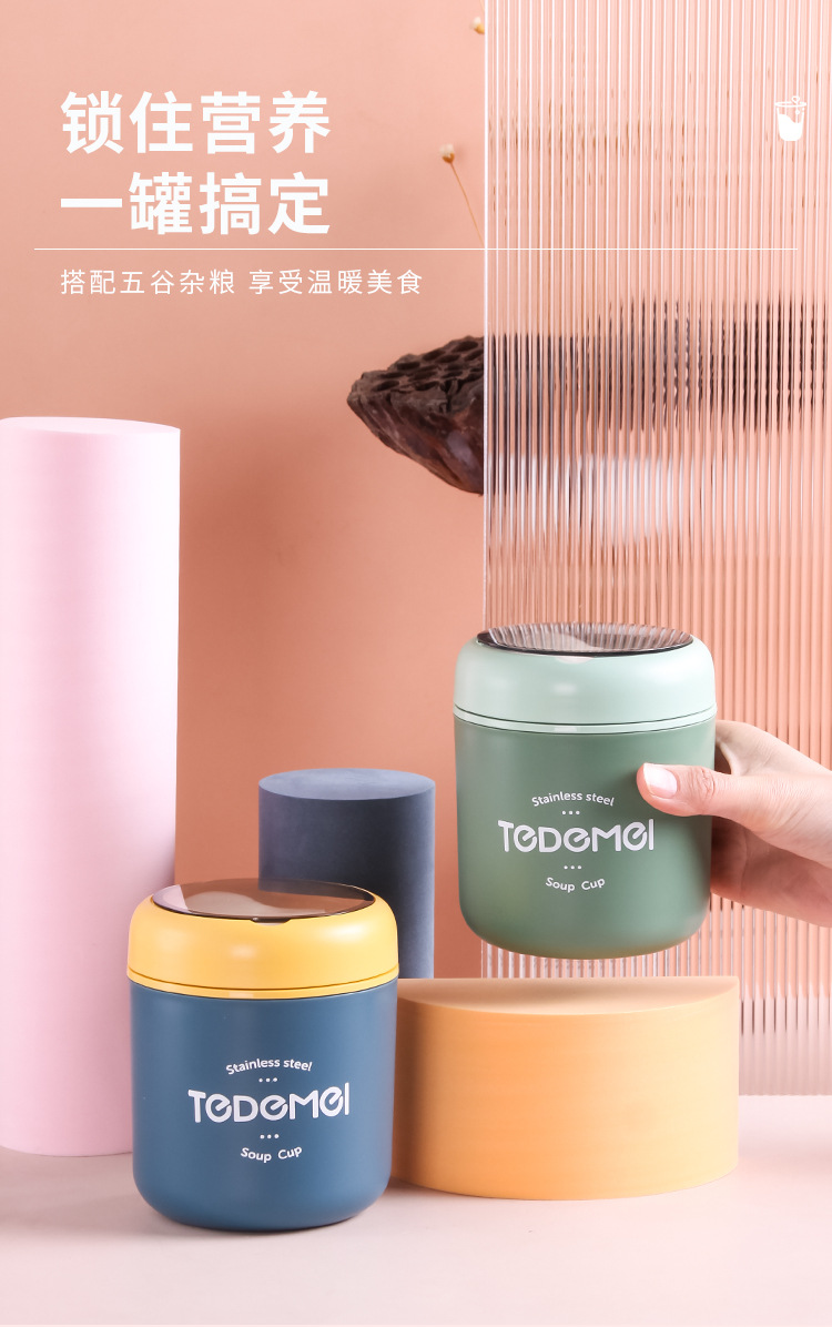 304不锈钢汤杯 早餐汤罐上班便当盒午餐盒手提便携水杯子-M仓