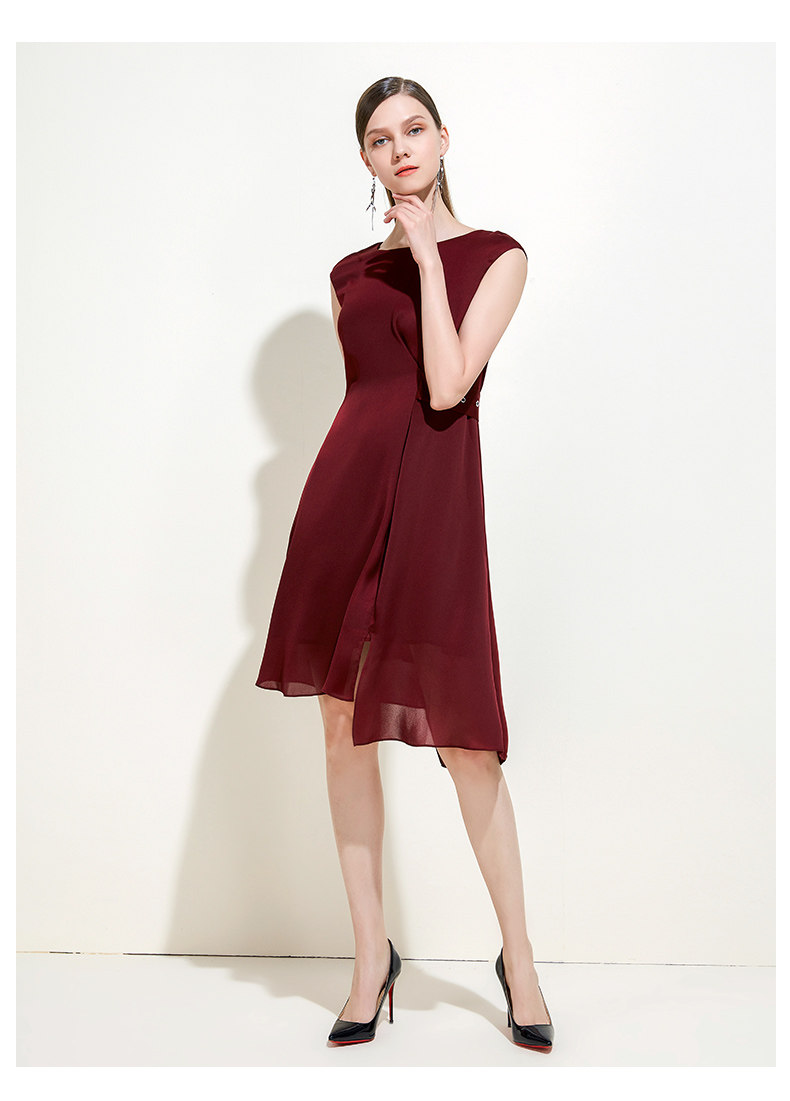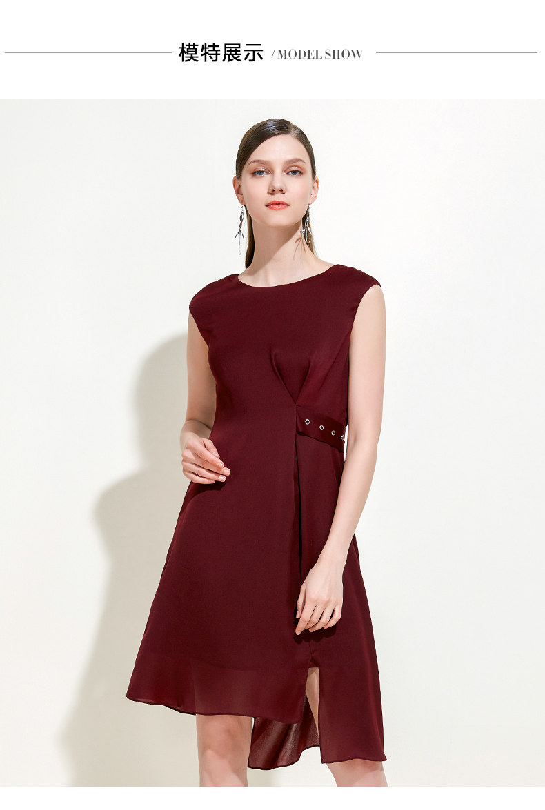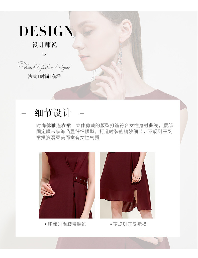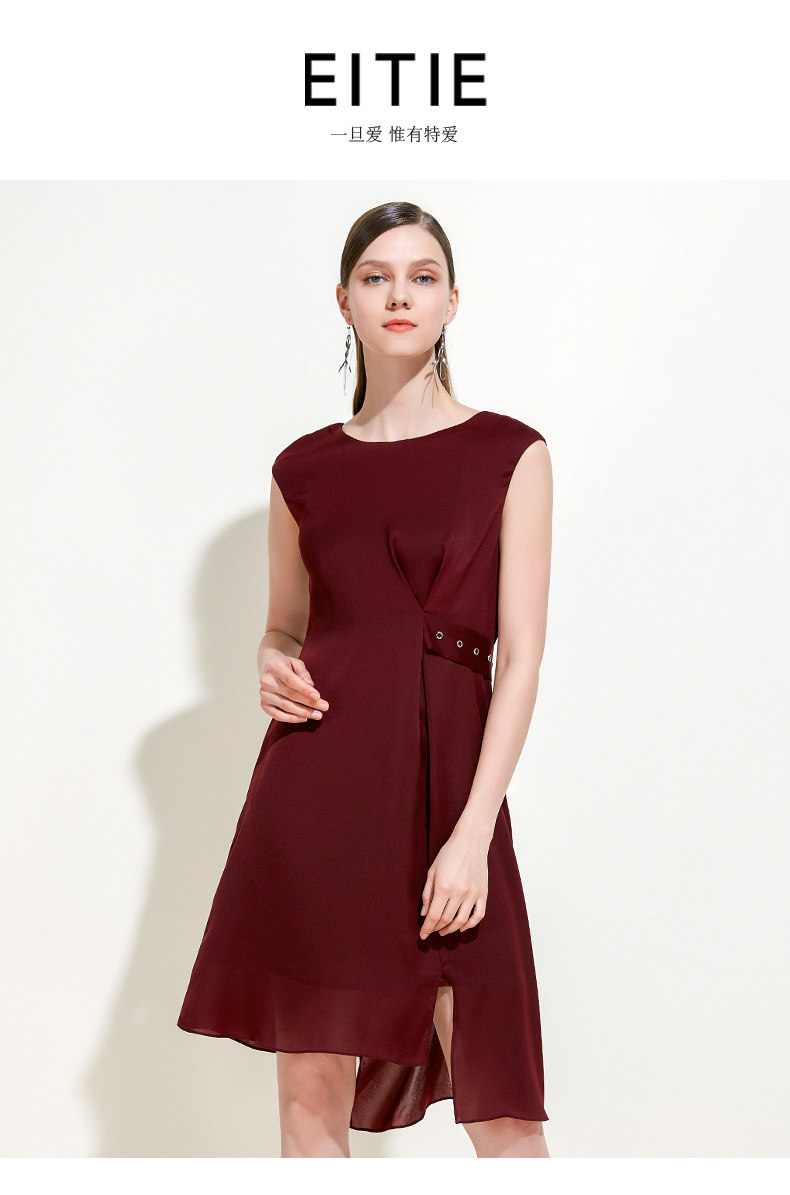 EITIE爱特爱女装夏季新品圆领不规则开叉裙摆时尚优雅连衣裙5907630
