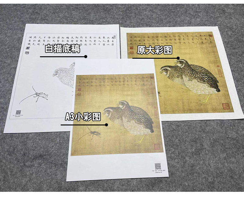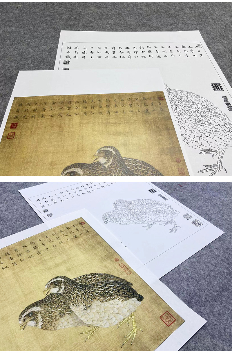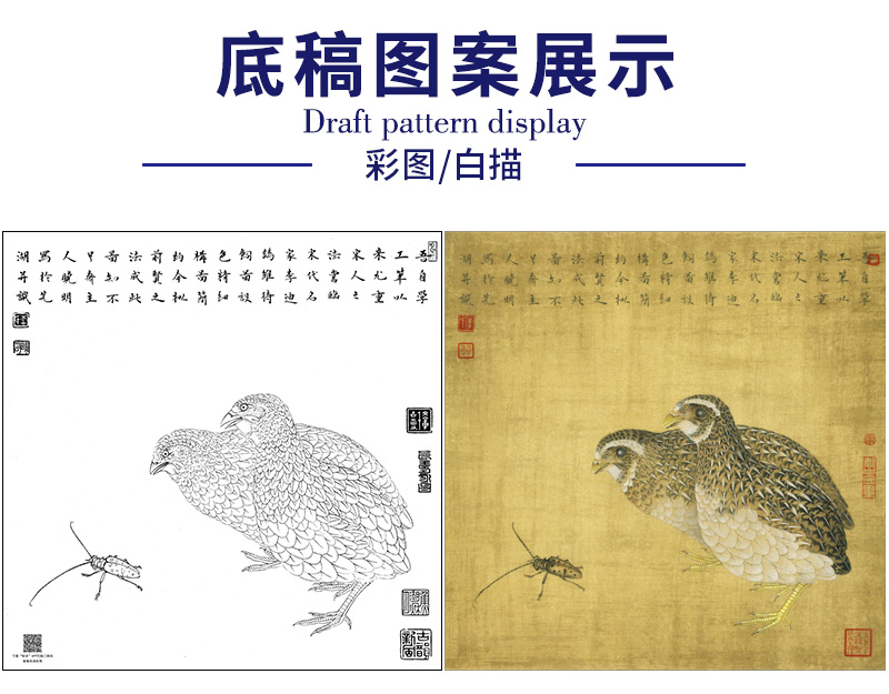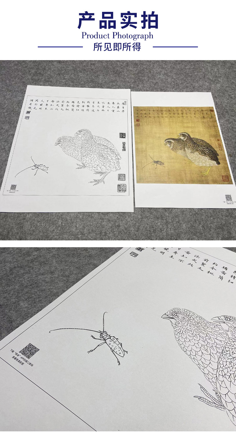 【大彩图】李晓明工笔画白描底稿斗方小品《鹌鹑天牛》临摹勾线动物线稿K054