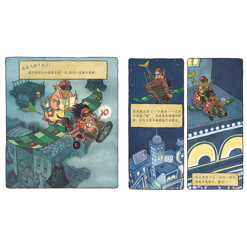 ★桑达克式的插画奇幻生动、充满想象力,吸引孩子进入不眠城的狂欢世界