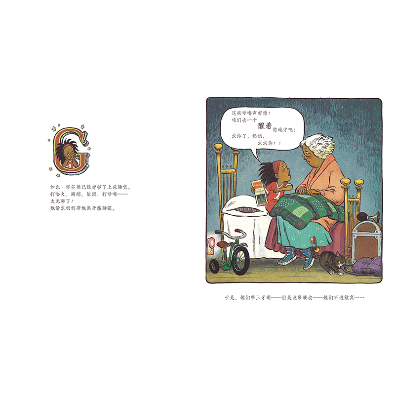 多漂亮的书啊!一个小女孩不想睡觉,所以她的奶奶带她来到了不眠城。但当一个哈欠跑走并且开始扩散时,就没法阻止它了。