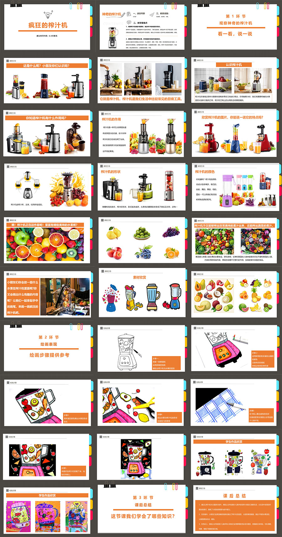 1、观察榨汁机的图片图素材,画出榨汁机的造型与色彩。