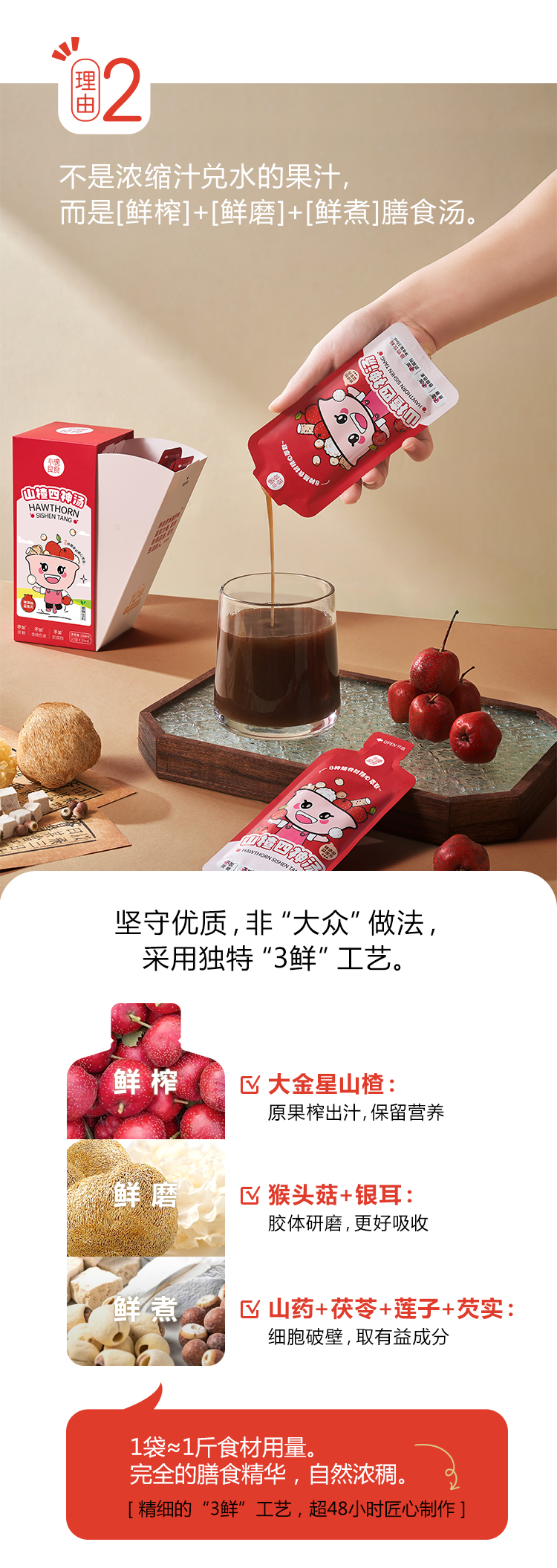 小碗良食古方山楂四神汤猴头菇银耳免煮鲜榨浓缩 直饮四神饮