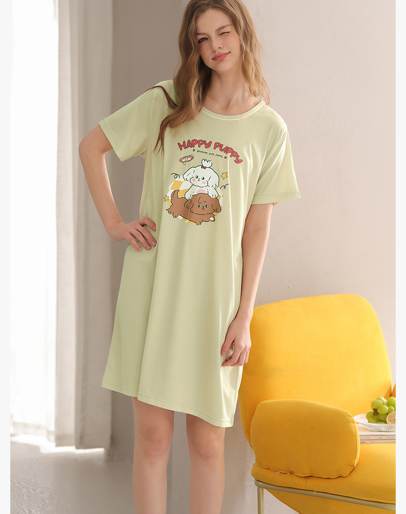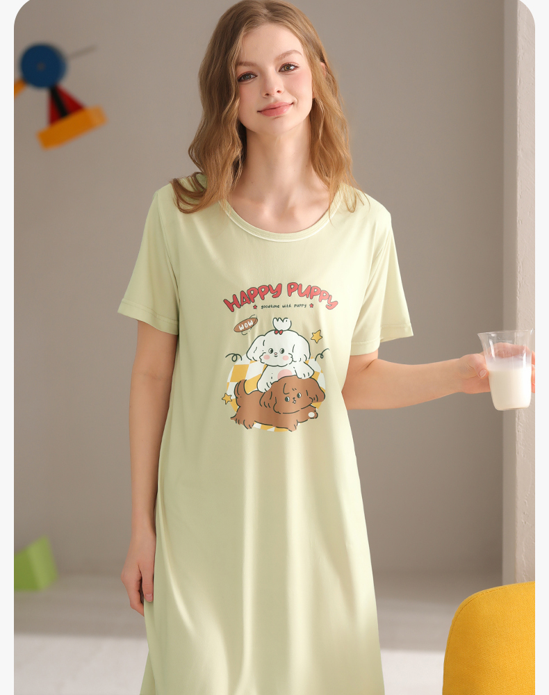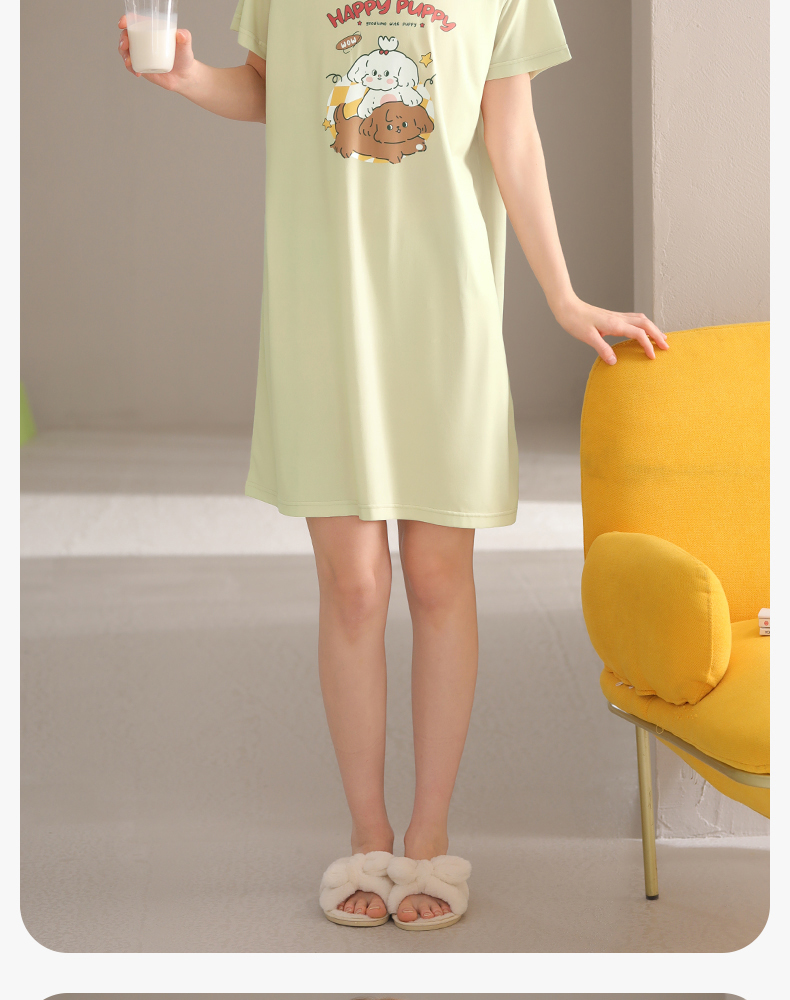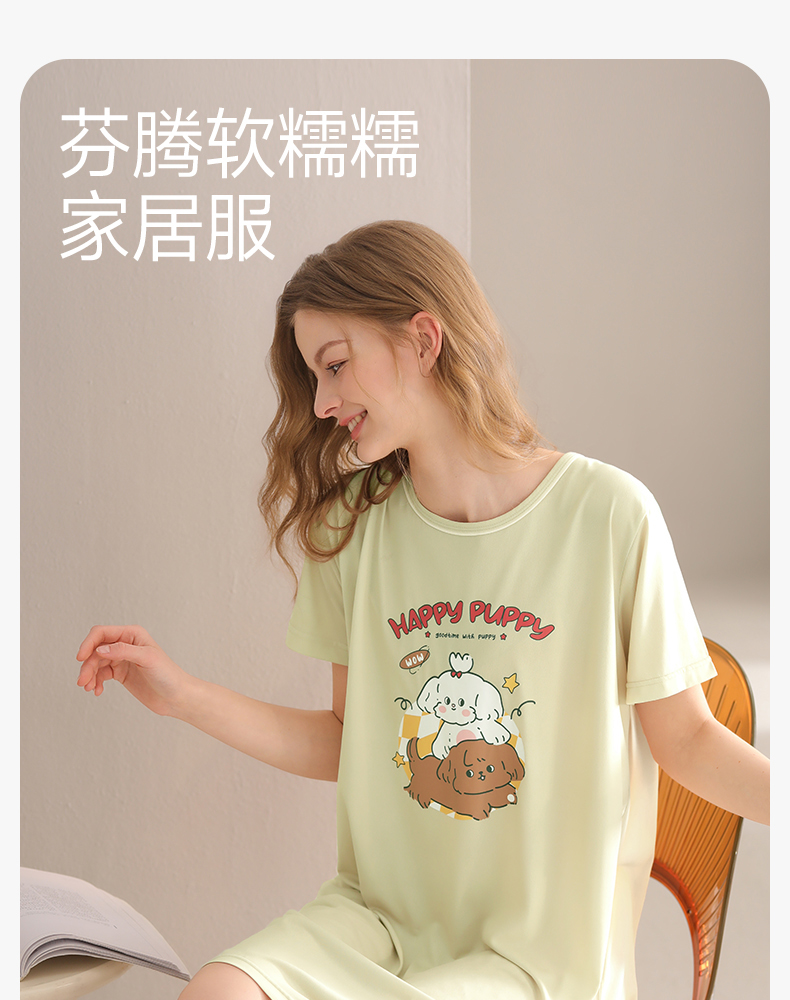 芬腾新款女士睡裙夏季薄款短袖睡衣裙少女卡通宽松透气家居服短裙