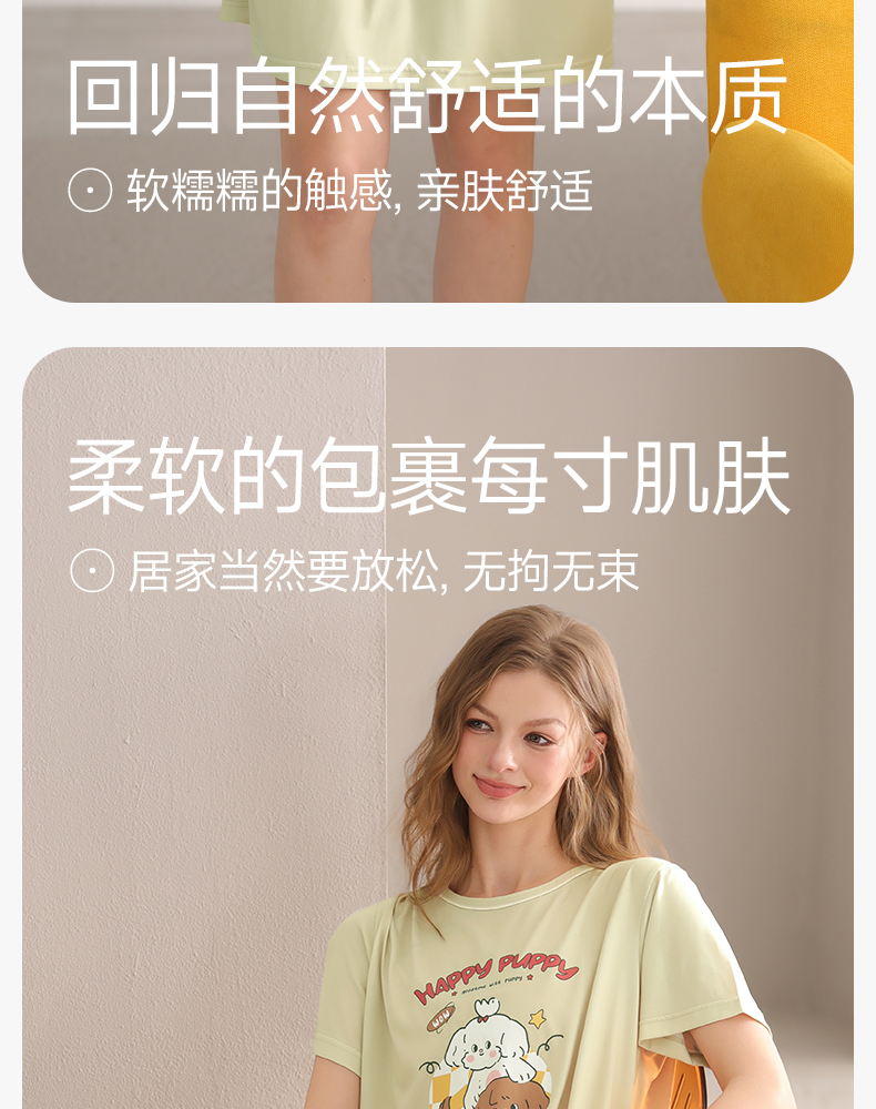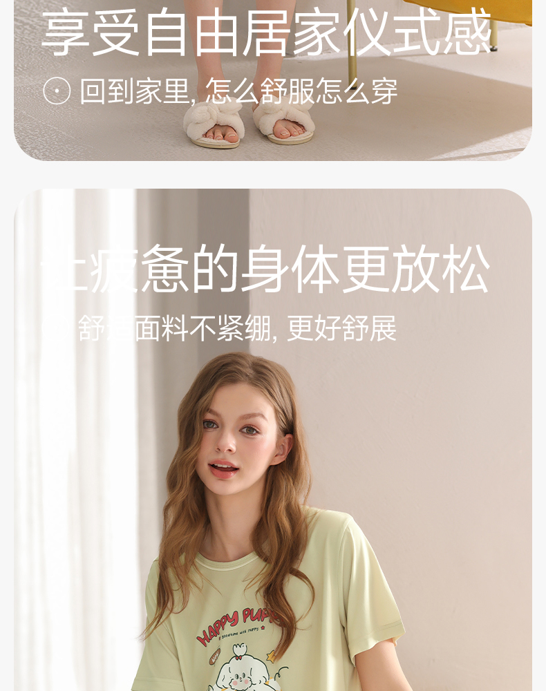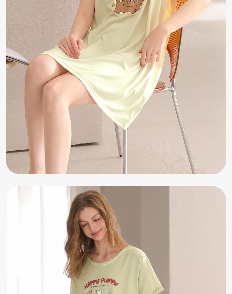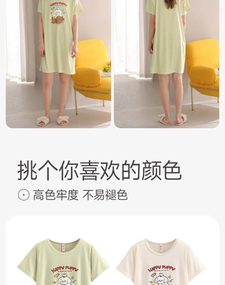 芬腾新款女士睡裙夏季薄款短袖睡衣裙少女卡通宽松透气家居服短裙