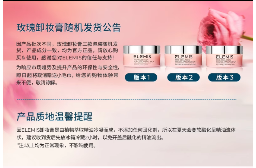 ELEMIS艾丽美卸妆膏深层清洁抗皱舒缓精油无花果/玫瑰味/经典洋甘菊