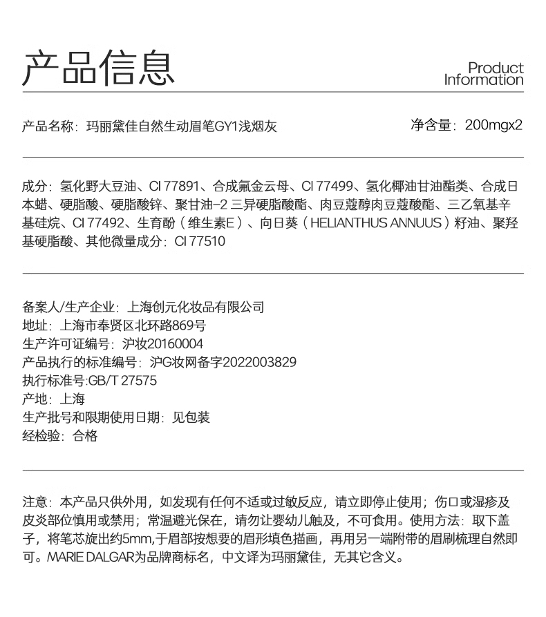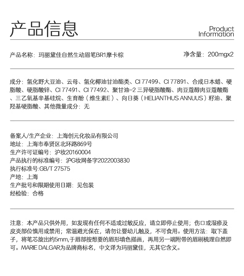 MARIE DALGAR 玛丽黛佳玛丽黛佳 自然生动眉笔-自然