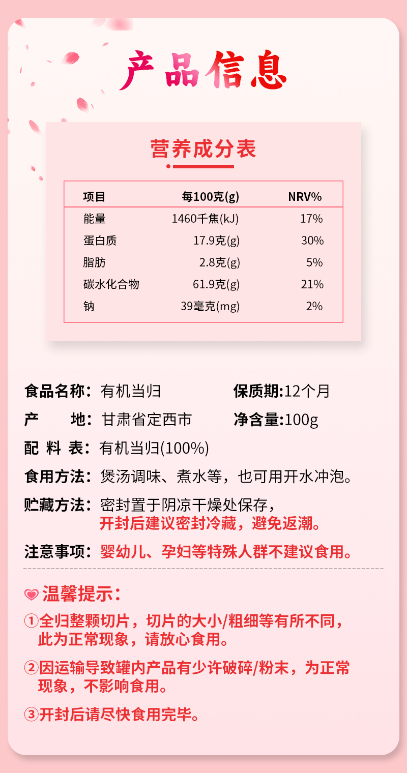 悦意 有机当归100g