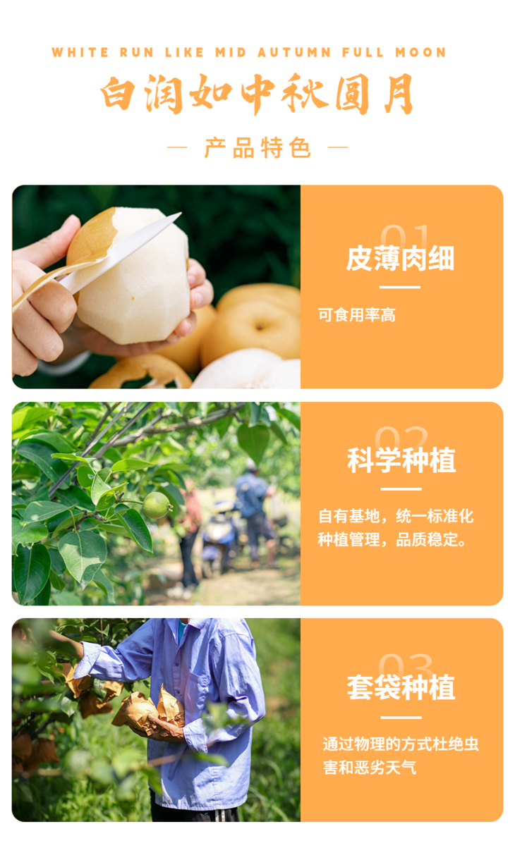 品名:山东正宗莱西•秋月梨 规格1:4.5~5斤家庭装(约4~8枚;以重量为准) 规格2:4.5~5斤礼盒装(固定6枚装);拍几份发几个包裹,不一定能同时到达,请耐心等待 发货产地:山东莱西 包装方式:普通装@礼盒箱 物流信息:默认顺丰/中通快递,不支持指定快递 发货区域:新疆、西藏、青海不发; 物流详情:周六、周日及节假日除外,正常48小时内发货,到货时间约为2~5天,请耐心等待 售后说明:收到货后有质量问题,在24小时内都可以拍照(坏品+快递单面箱子一起拍)上传,申请按坏品比例理赔或联系客服,生鲜食品性质特殊,不支持7天无理由退换货;因地址错误,手机号联系不上,拒收等造成的损失无法售后,请理解; |