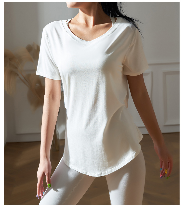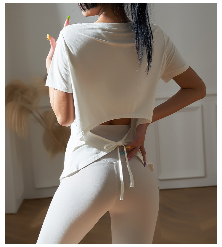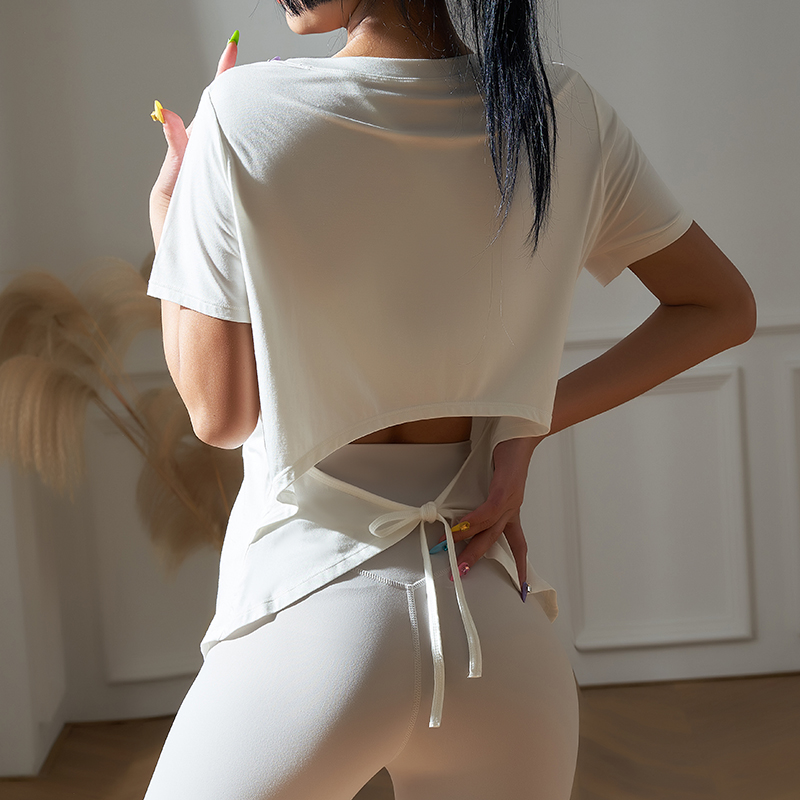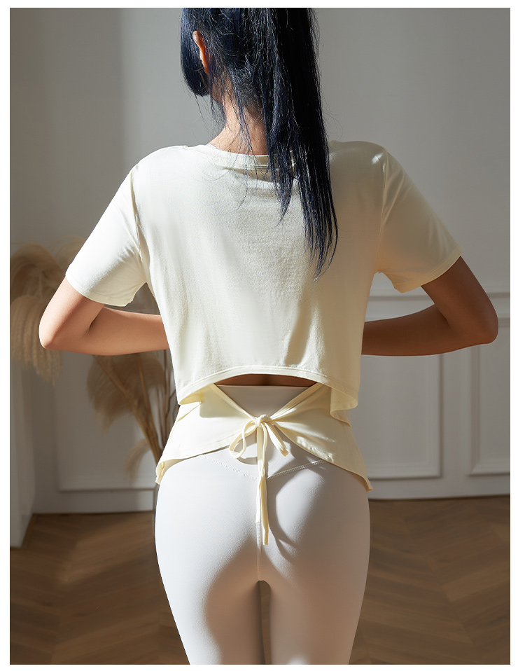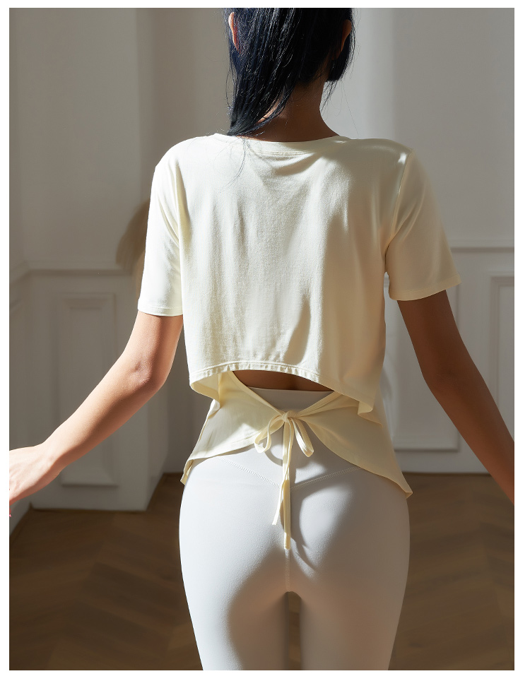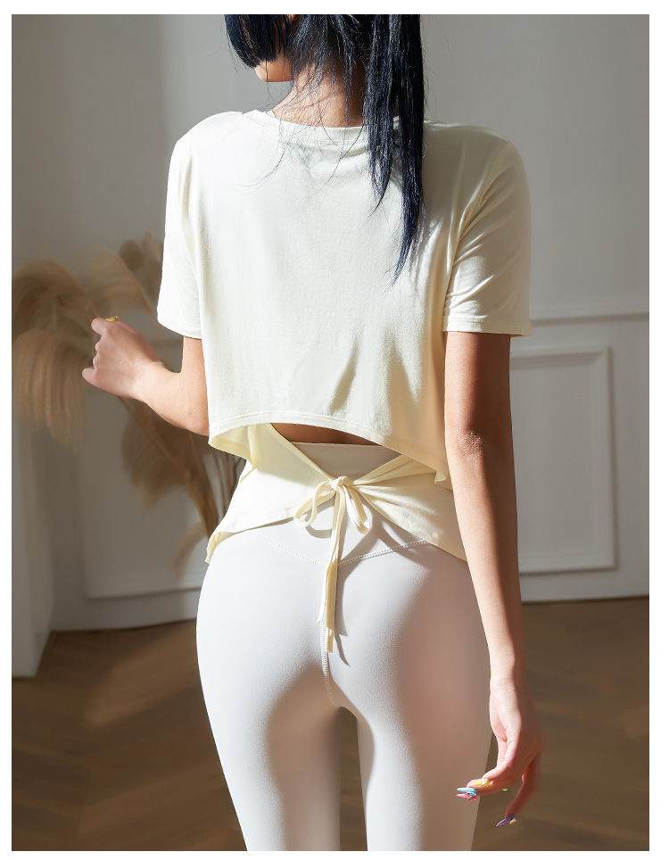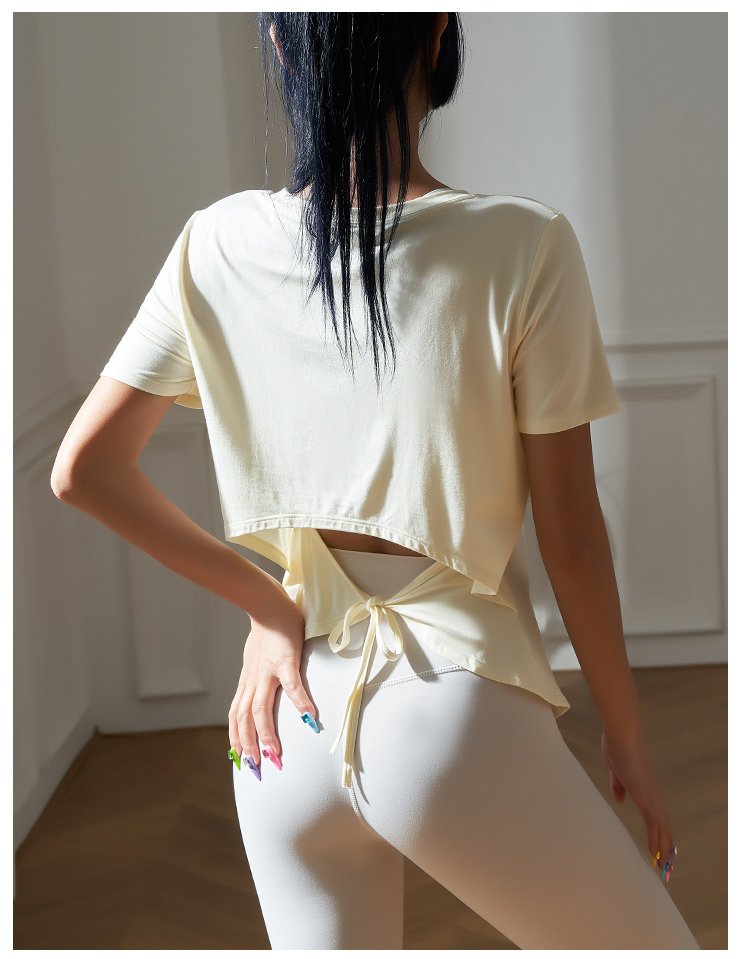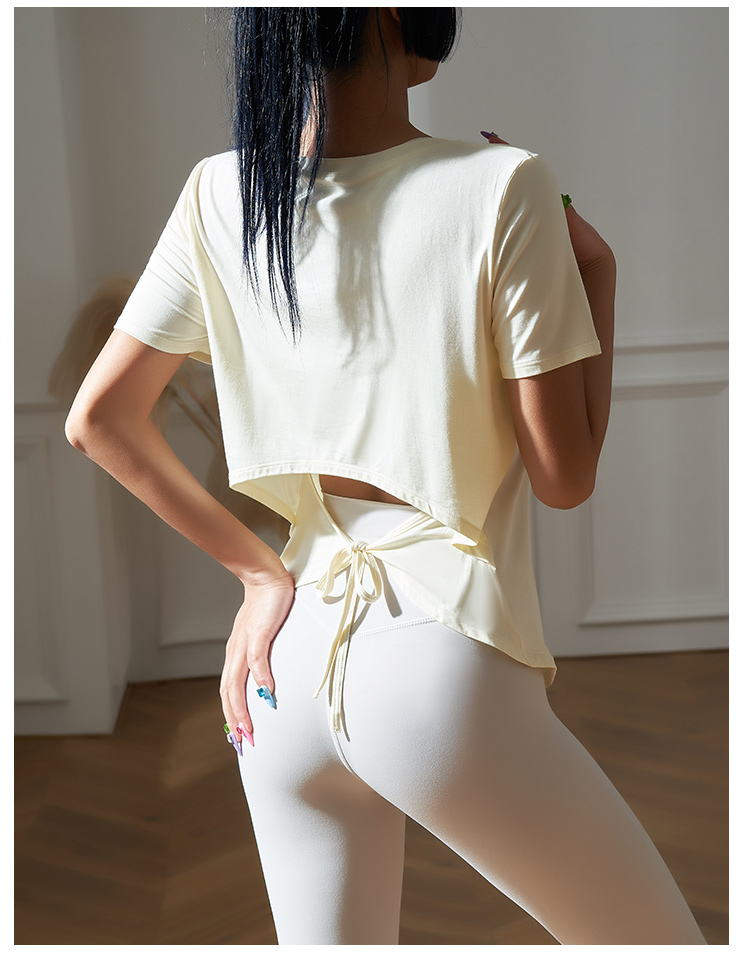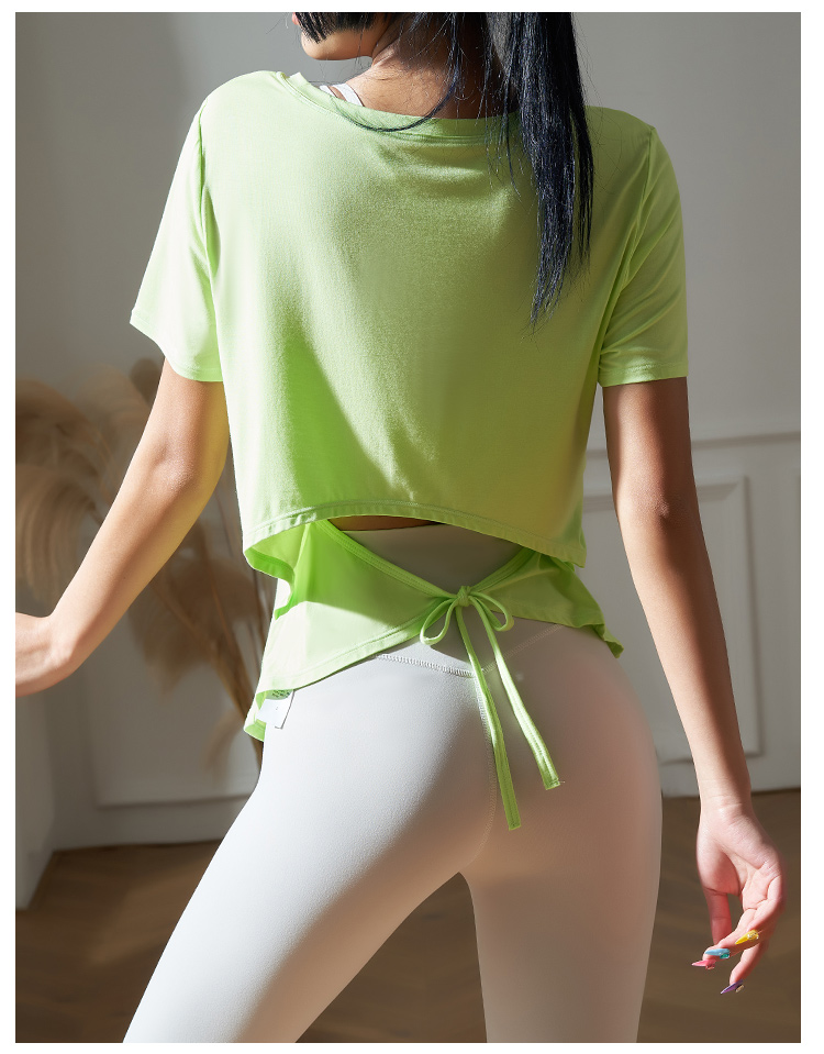 跃牌【健舞健美】系列系绳宽松短袖T恤健身运动罩衫 8915(无胸垫)