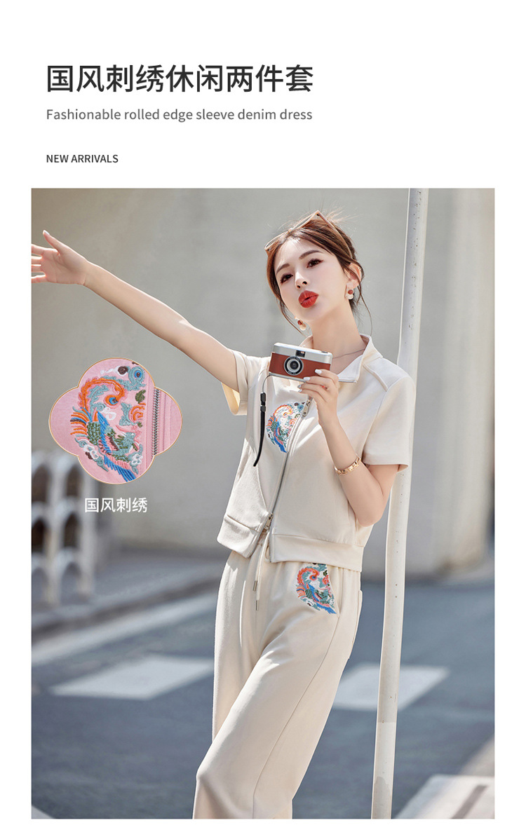新中式国风休闲套装,刺绣开衫气质百搭阔腿裤两件套HR-BX2512