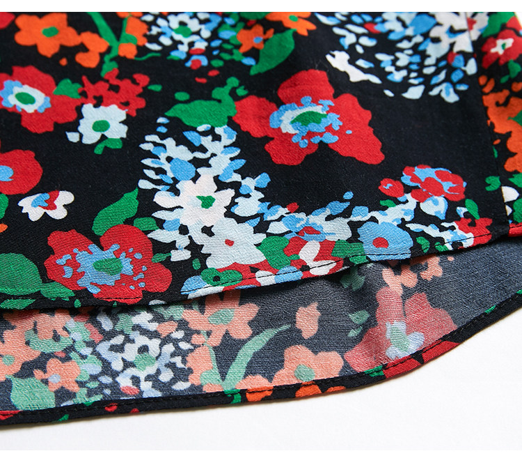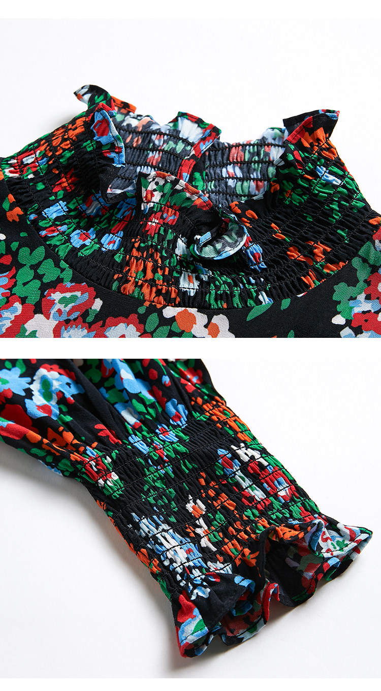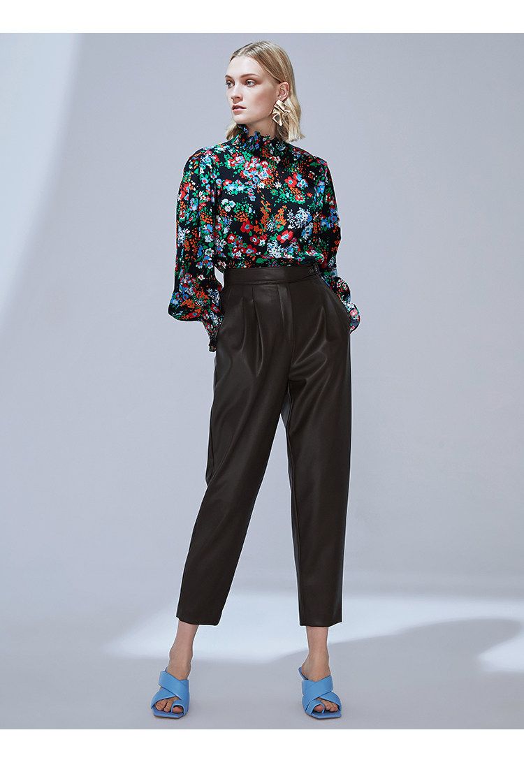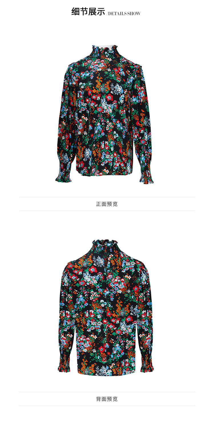 VIMAGE纬漫纪秋款个性复古高领宫廷泡泡袖印花衬衫女上衣V1413007