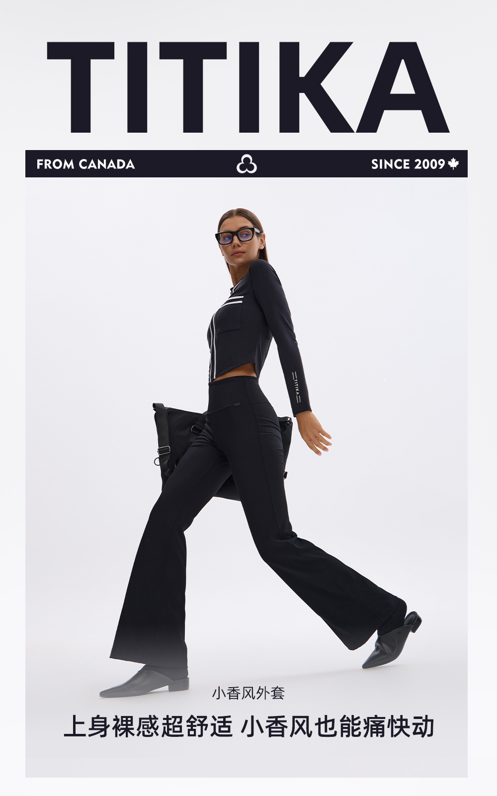 加拿大TITIKA小香风修身运动夹克女秋季健身跑步休闲短款外套女31127