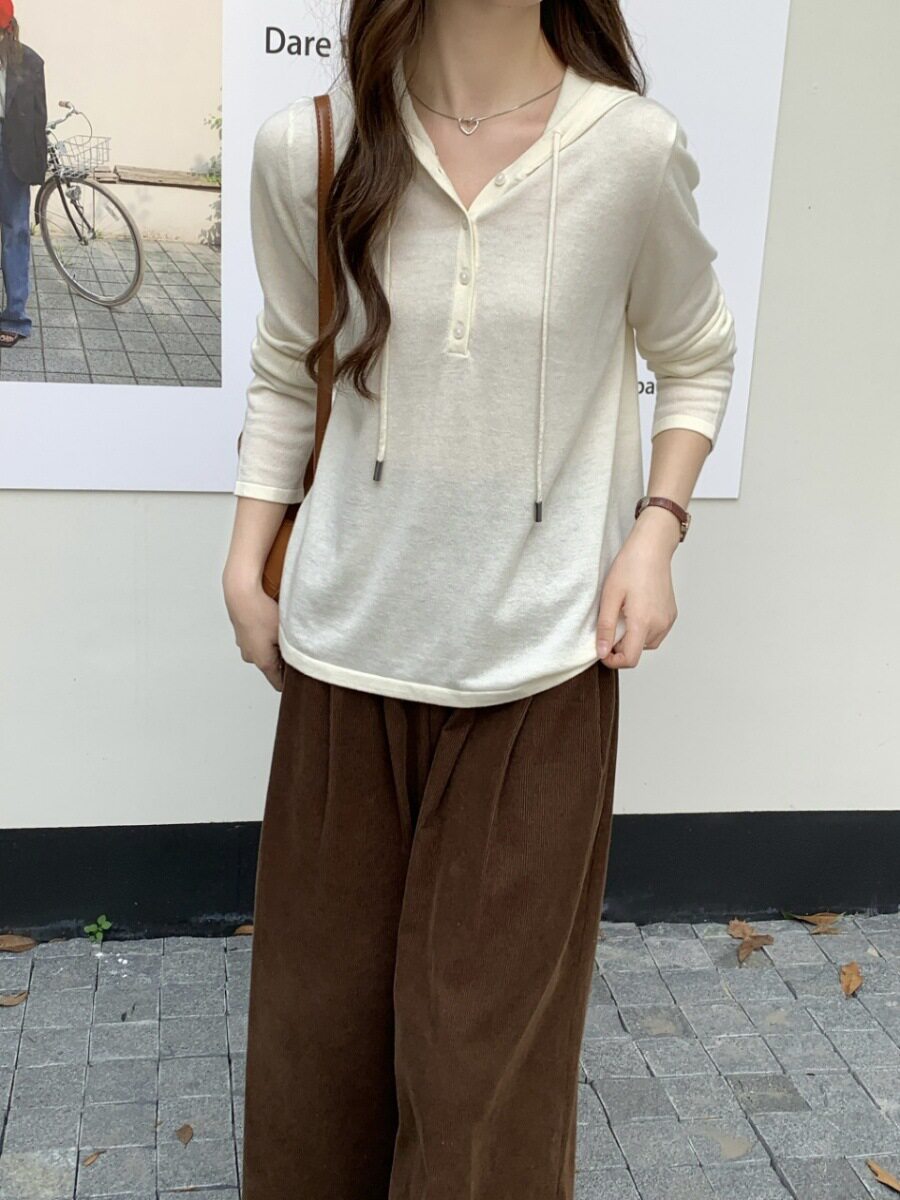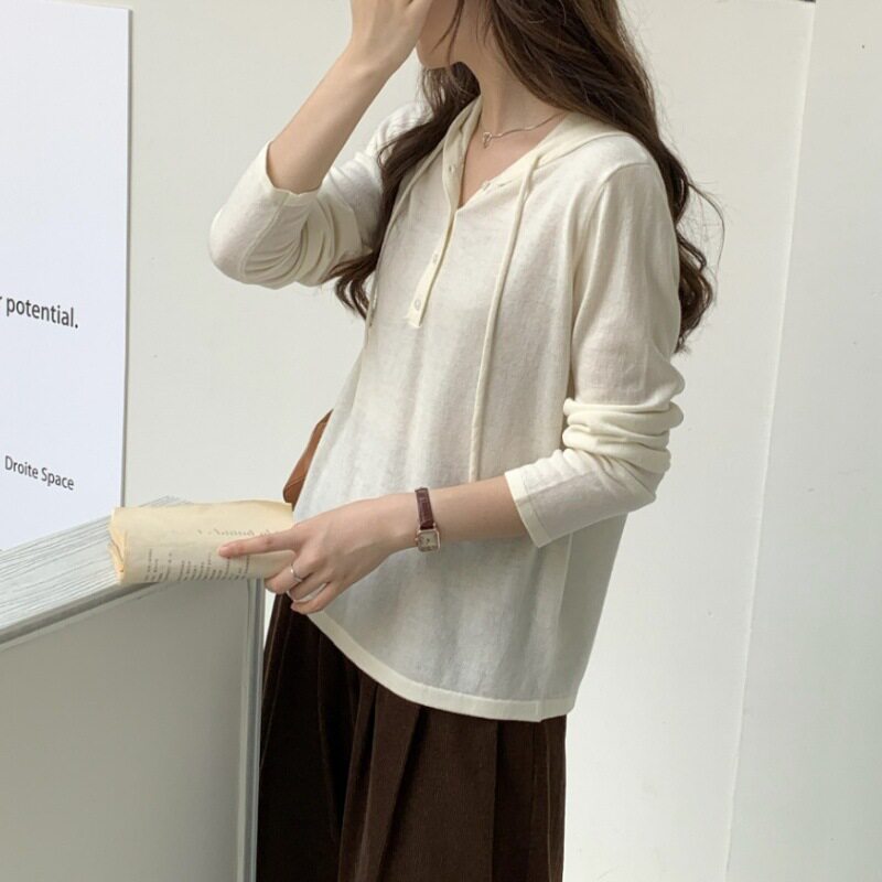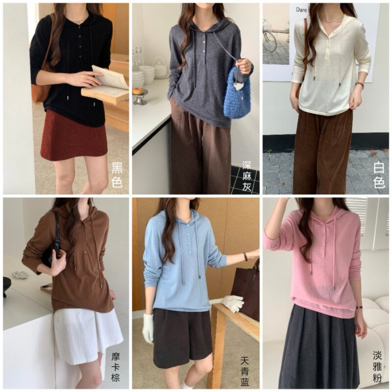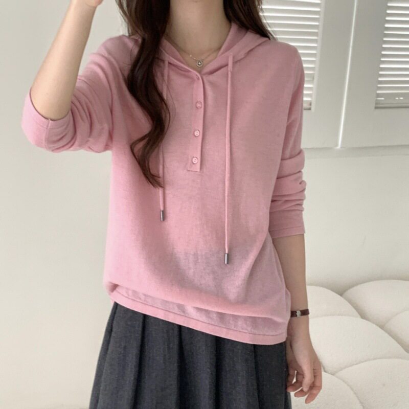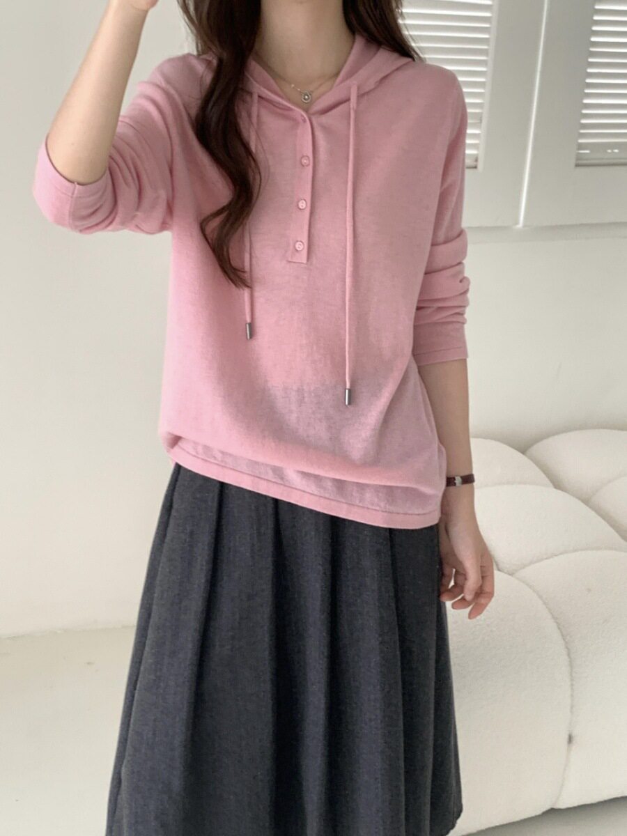 【100羊毛】连帽长袖套头针织衫上衣女早秋薄款亲肤显瘦外搭内搭 ASZT-AS2058832