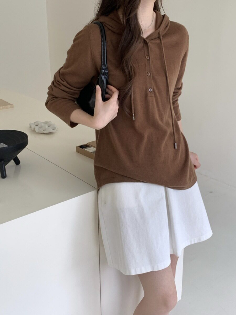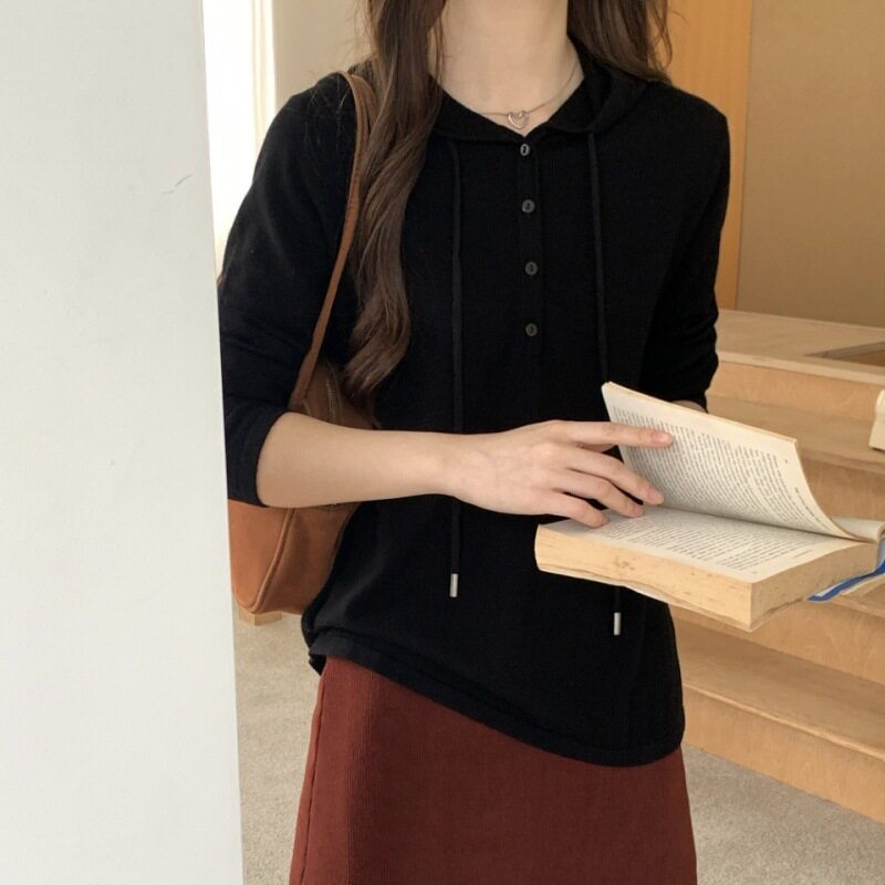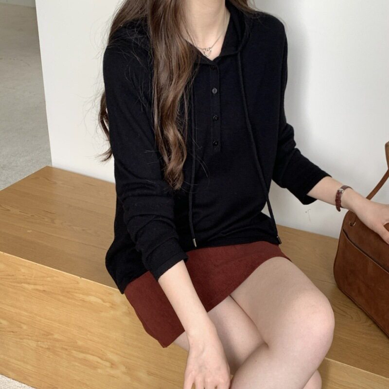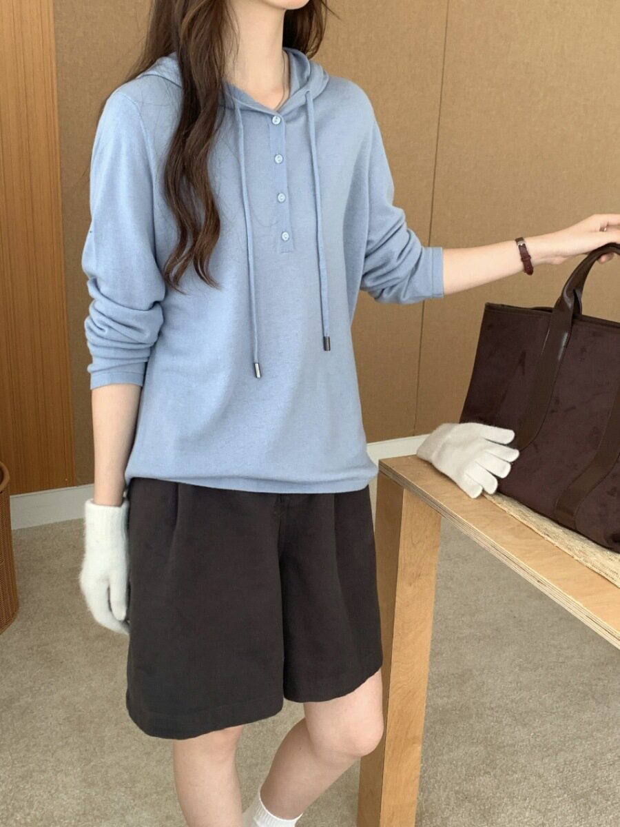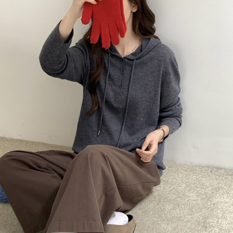 【100羊毛】连帽长袖套头针织衫上衣女早秋薄款亲肤显瘦外搭内搭 ASZT-AS2058832