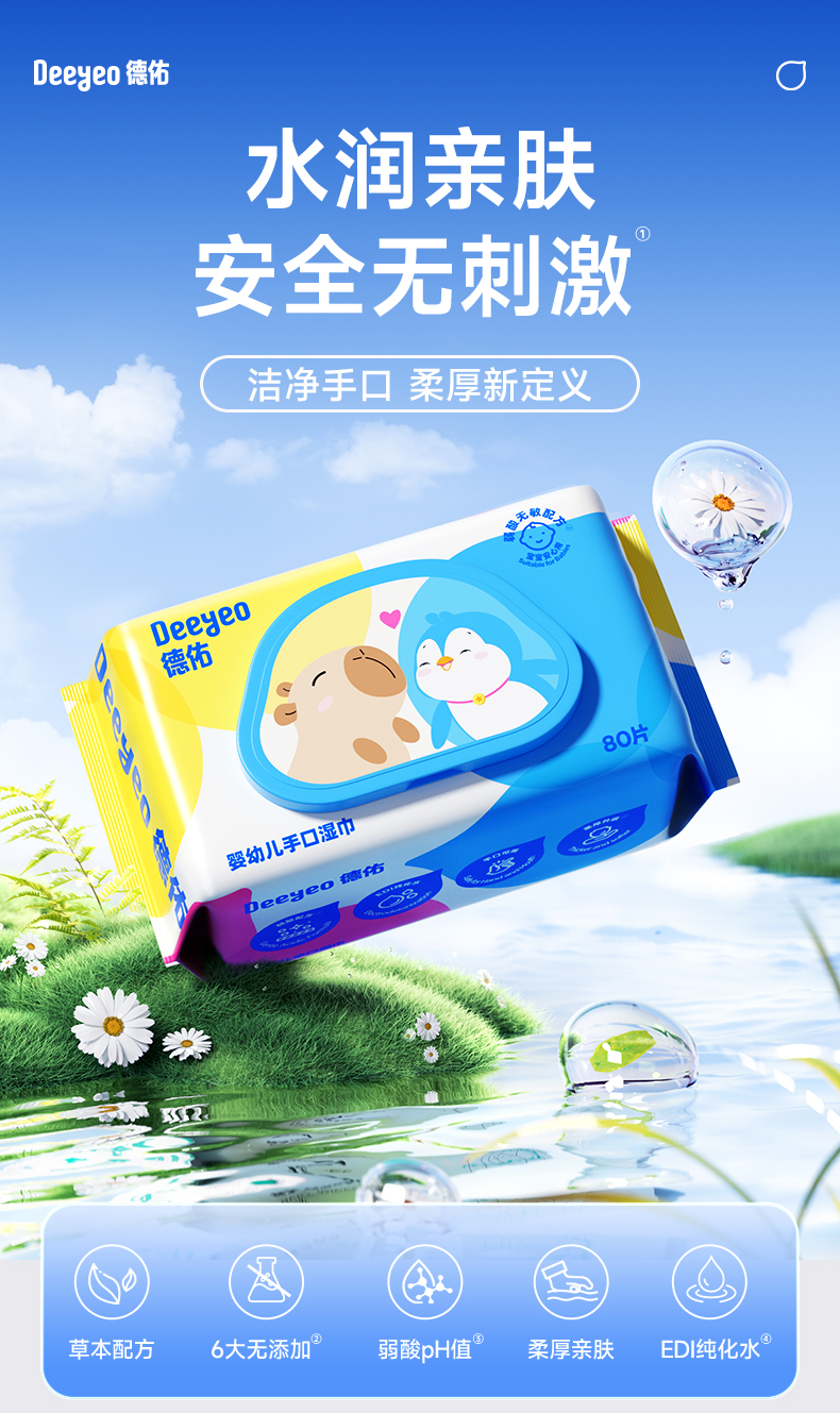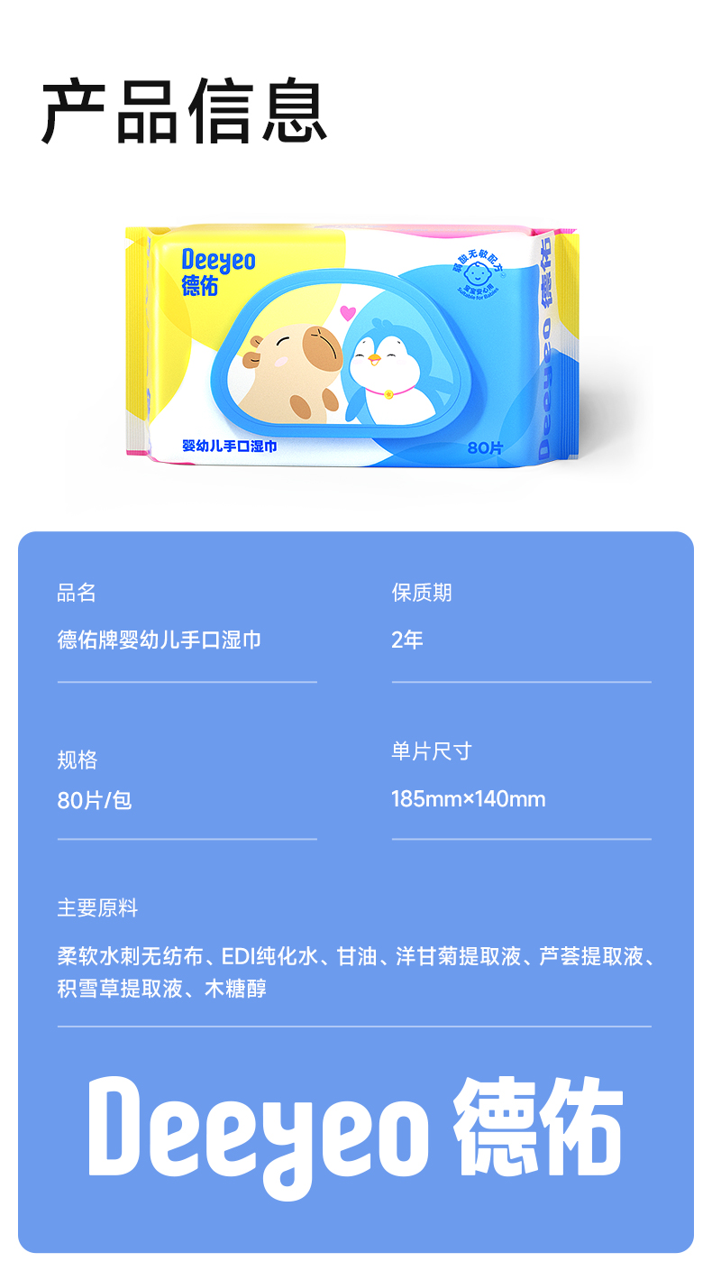 【GX】德佑婴幼儿手口柔湿巾彩色萌芽款65g布80片*5包
