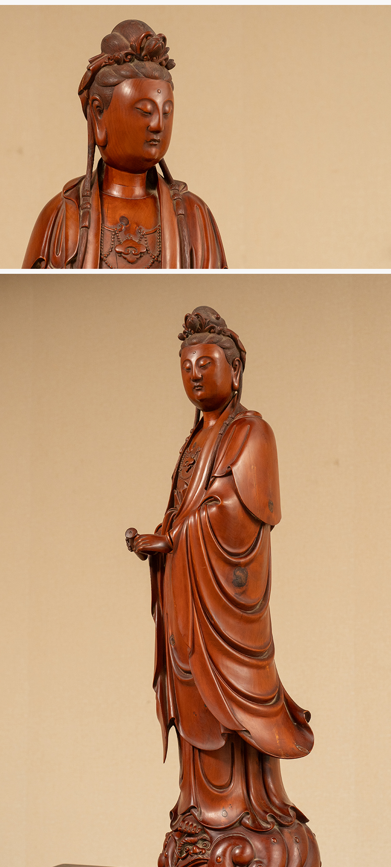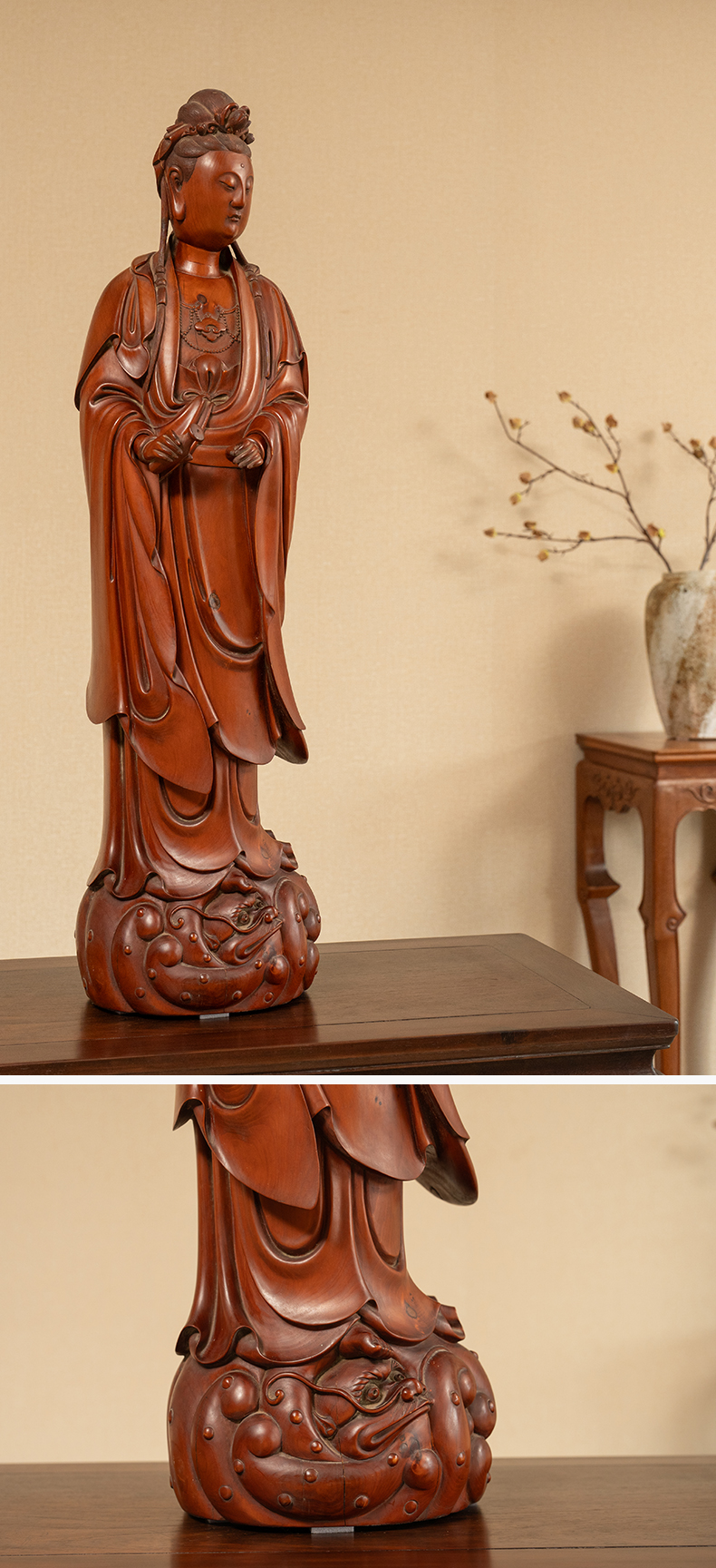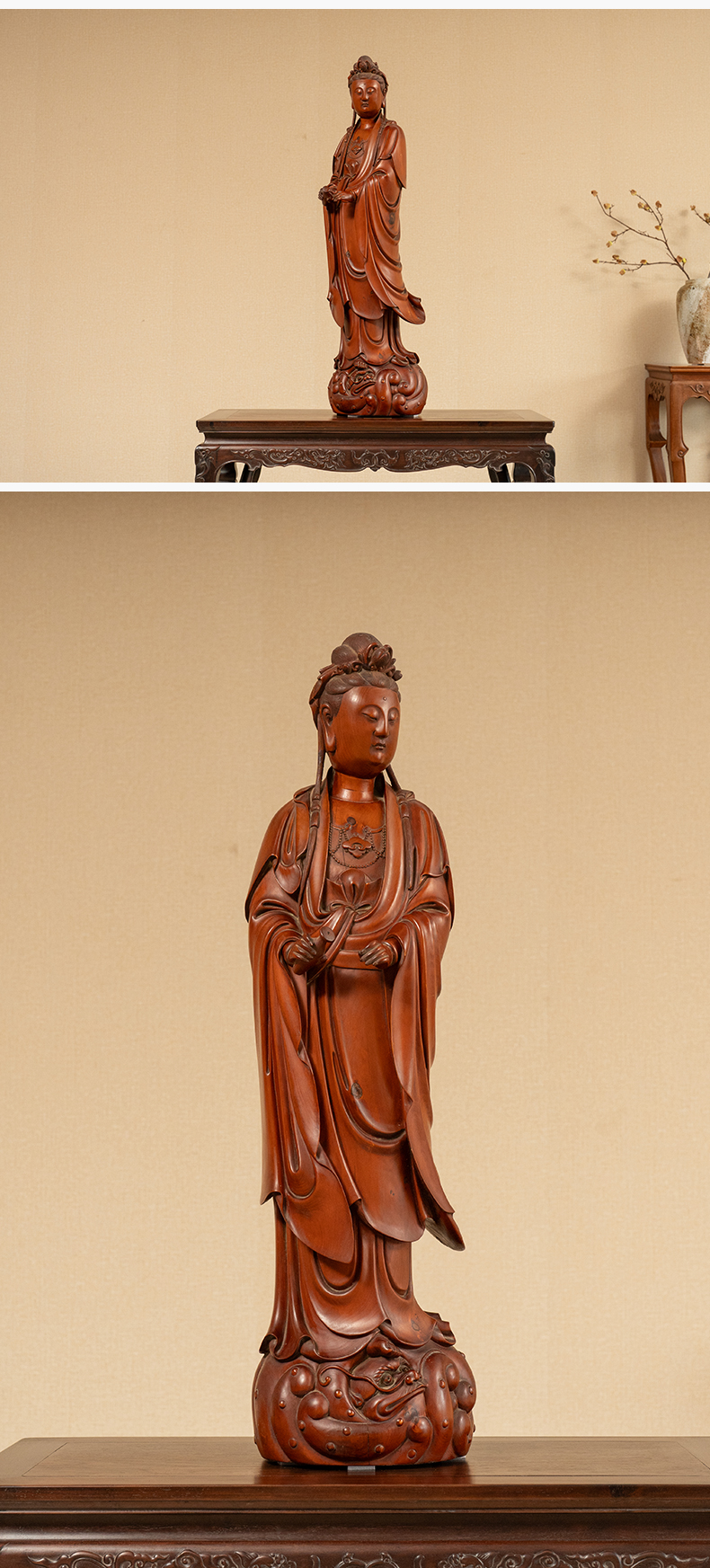 清 黄杨木雕净瓶观音像