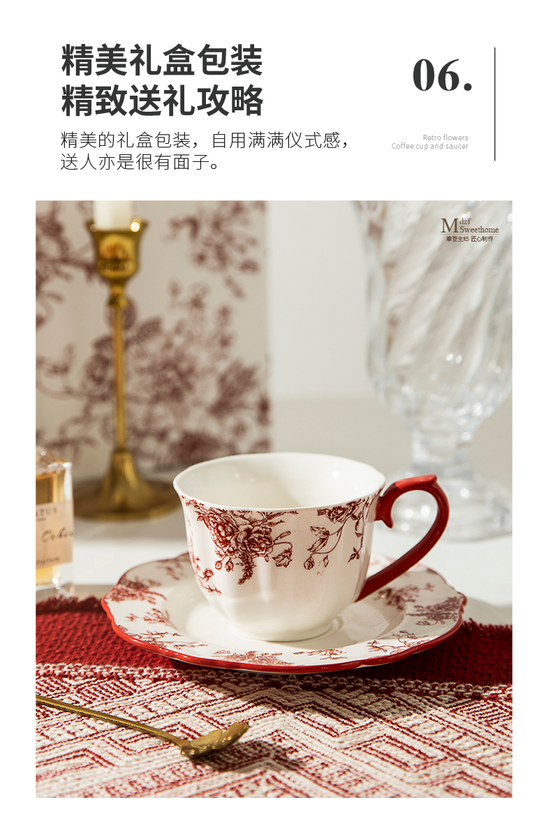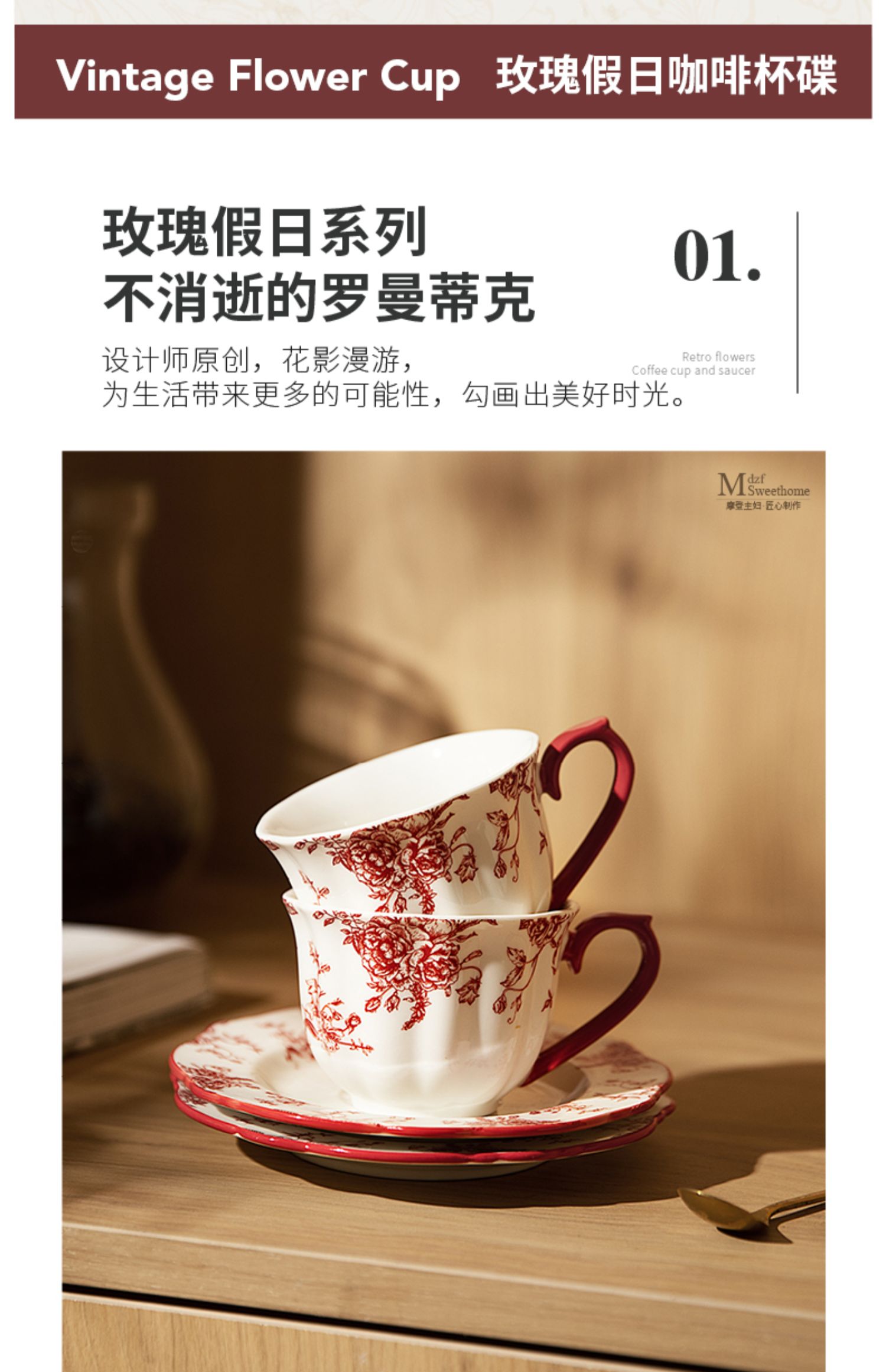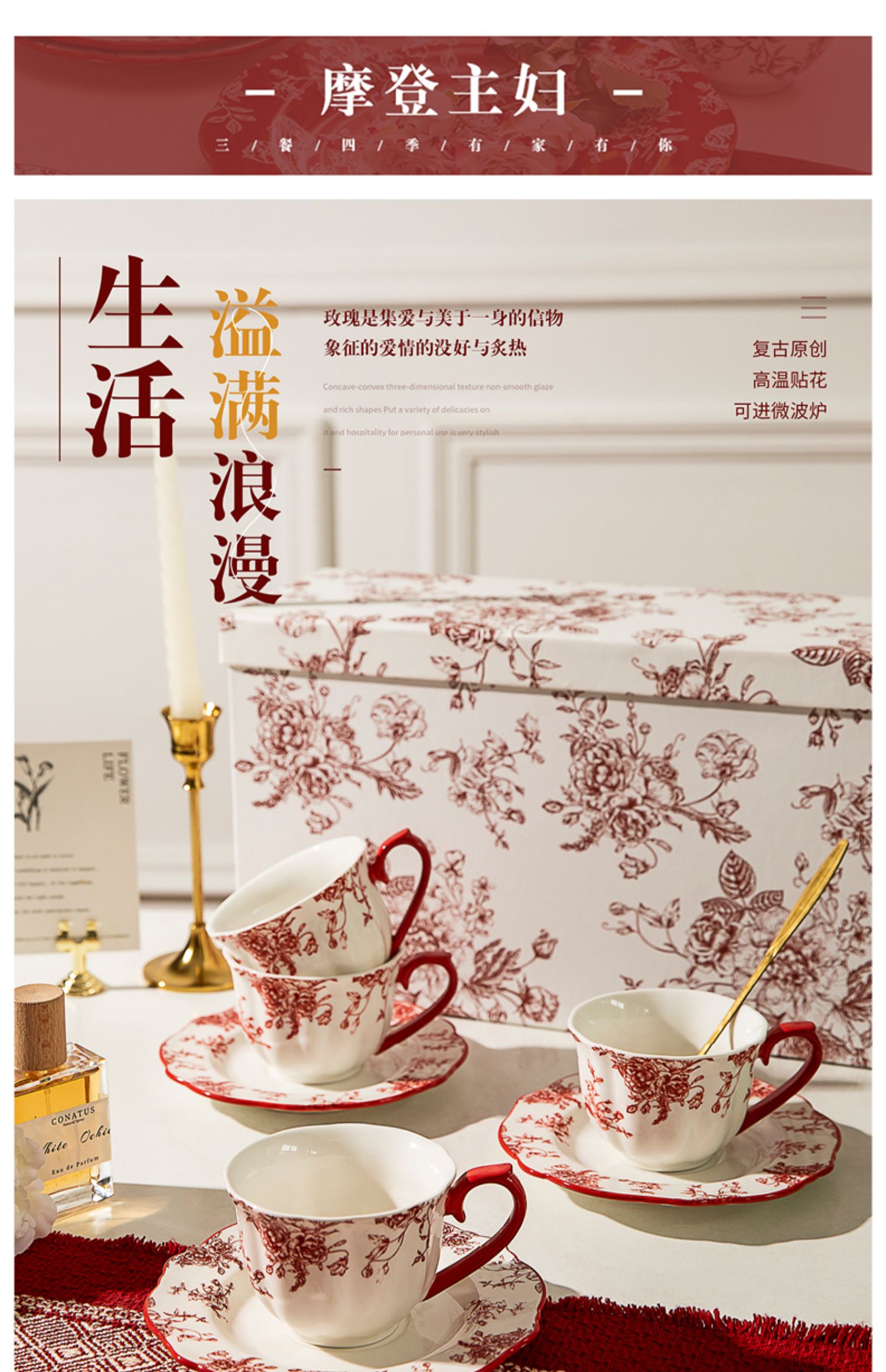 摩登主妇玫瑰假日新婚礼物咖啡杯碟套装高颜值家用复古结婚伴手礼