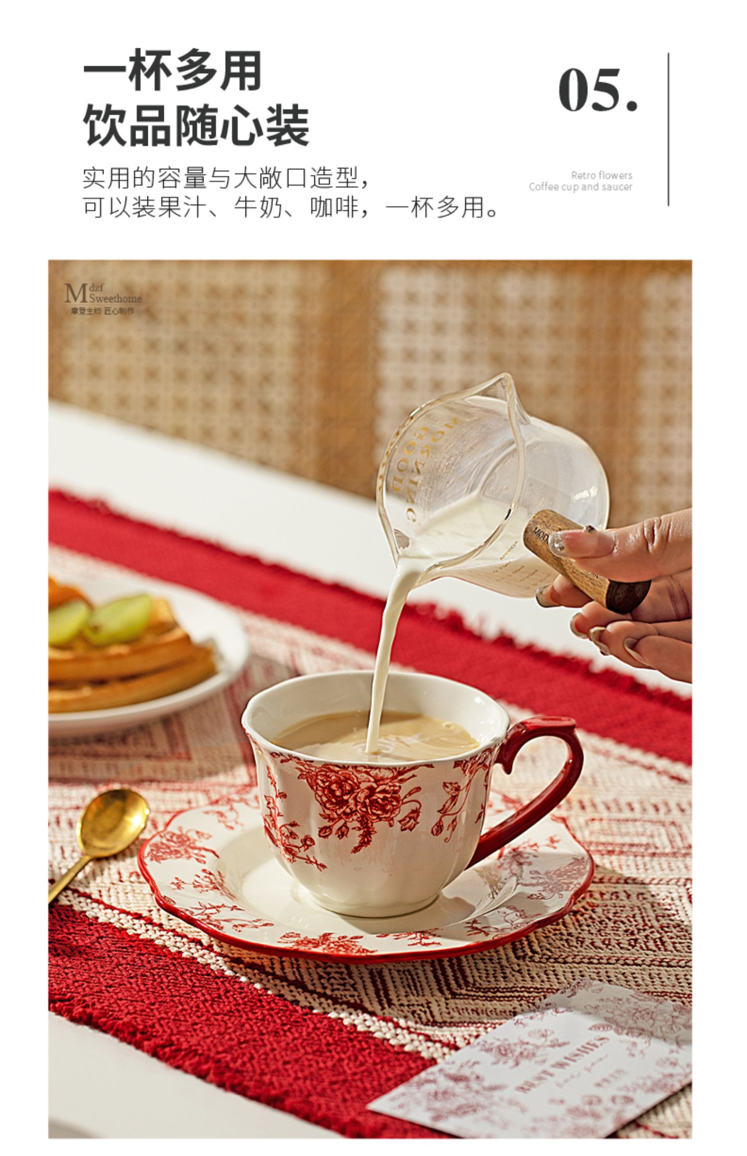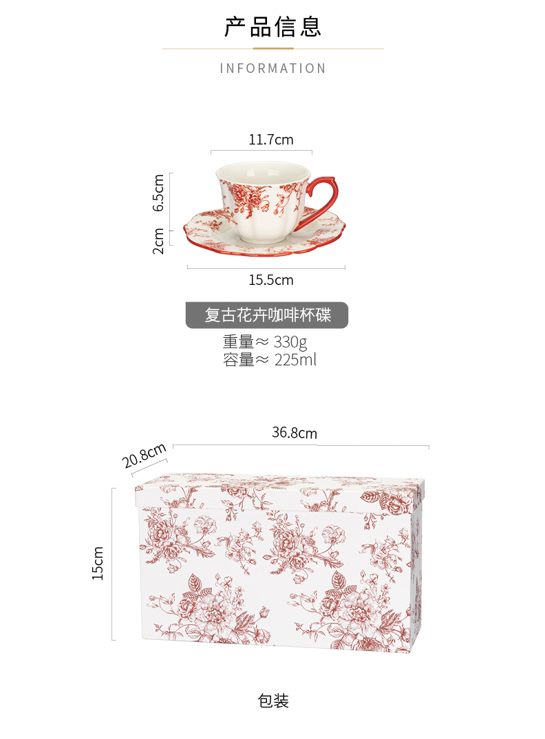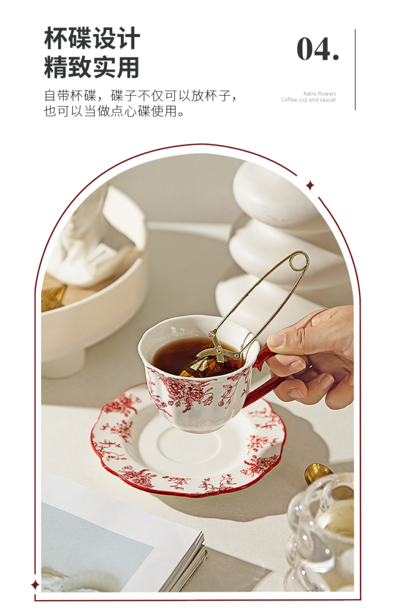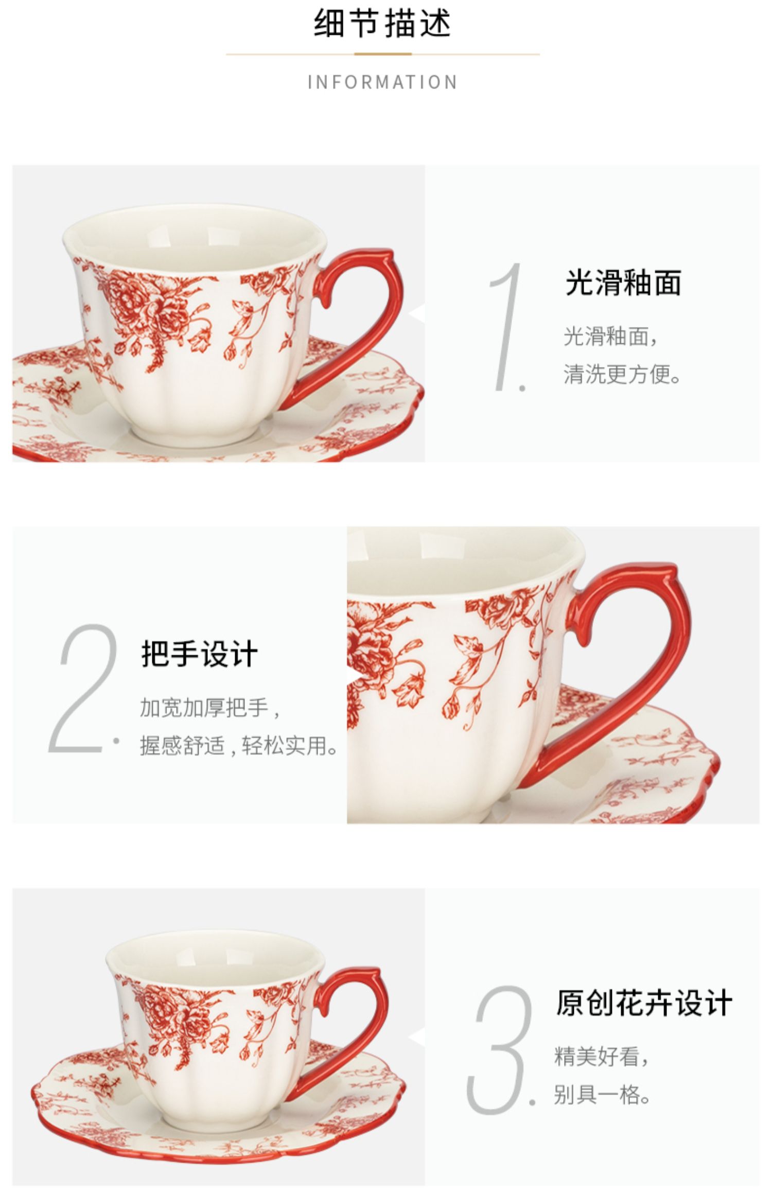 摩登主妇玫瑰假日新婚礼物咖啡杯碟套装高颜值家用复古结婚伴手礼