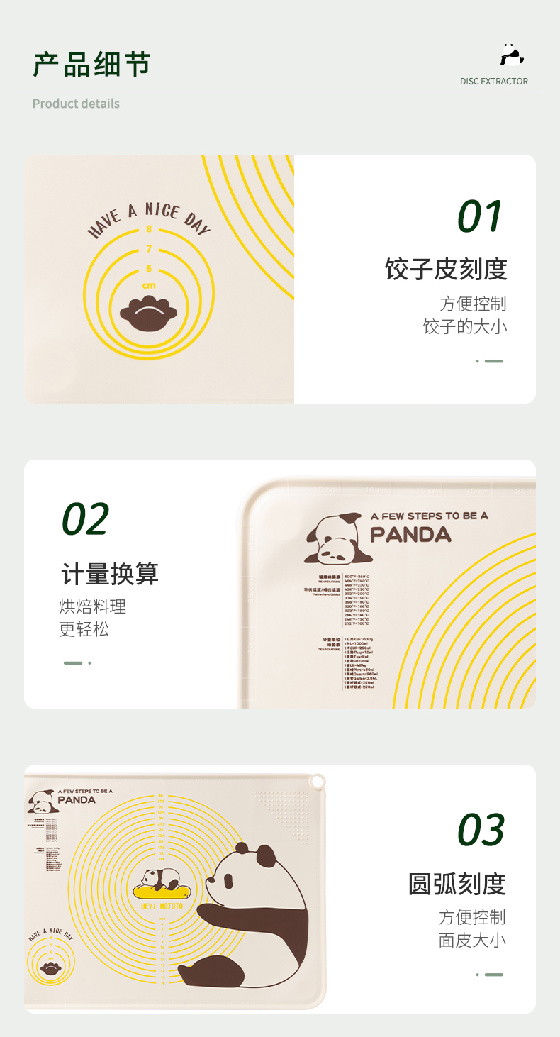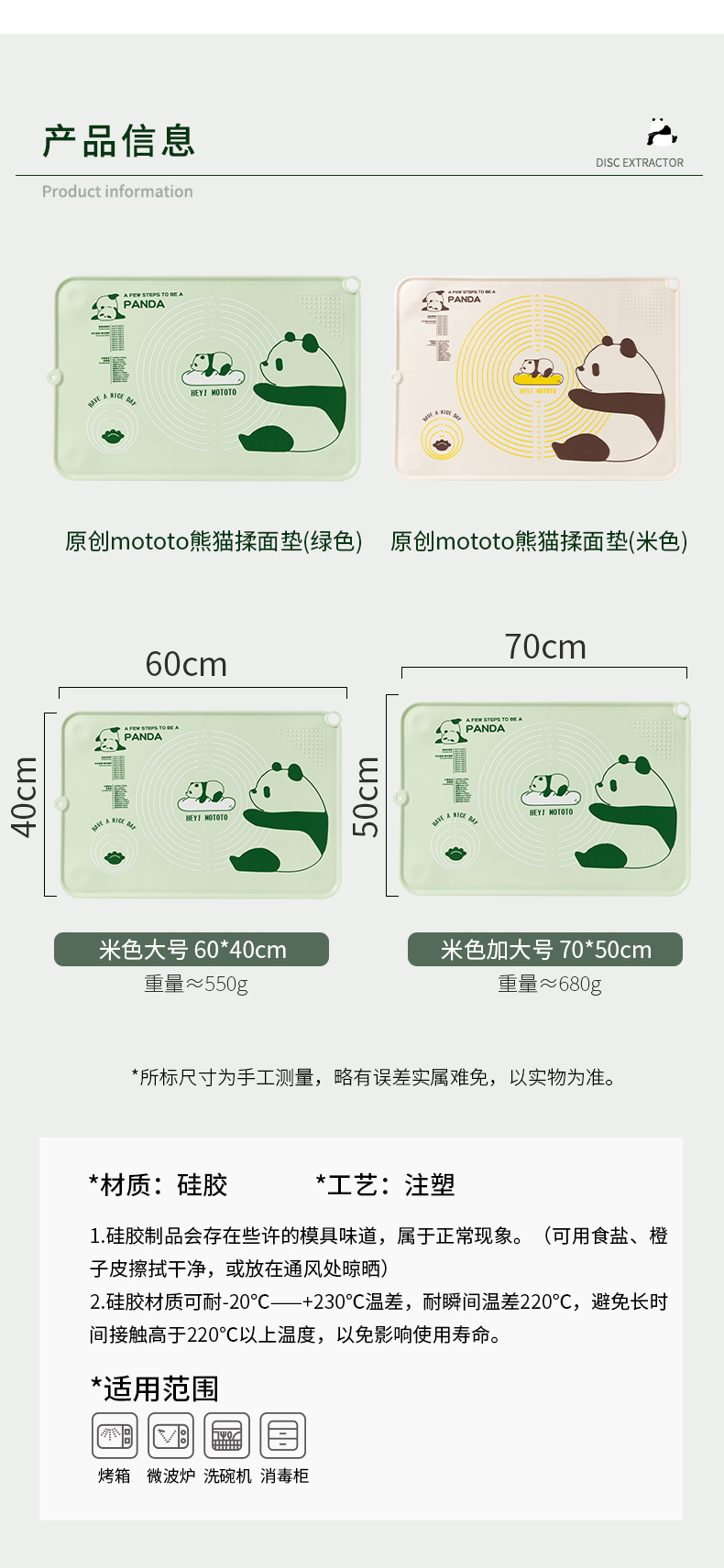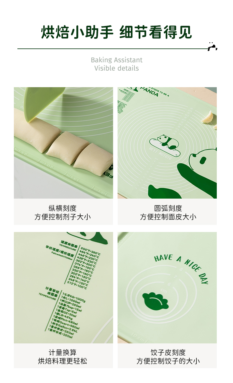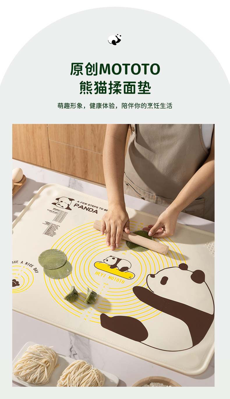 摩登主妇mototo熊猫揉面垫加厚食品级硅胶面板擀面垫子家用和面垫