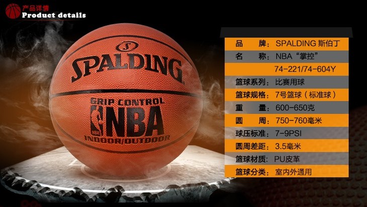 斯伯丁Spalding 比赛篮球74-604Y 室内外PU耐磨7号nba蓝球