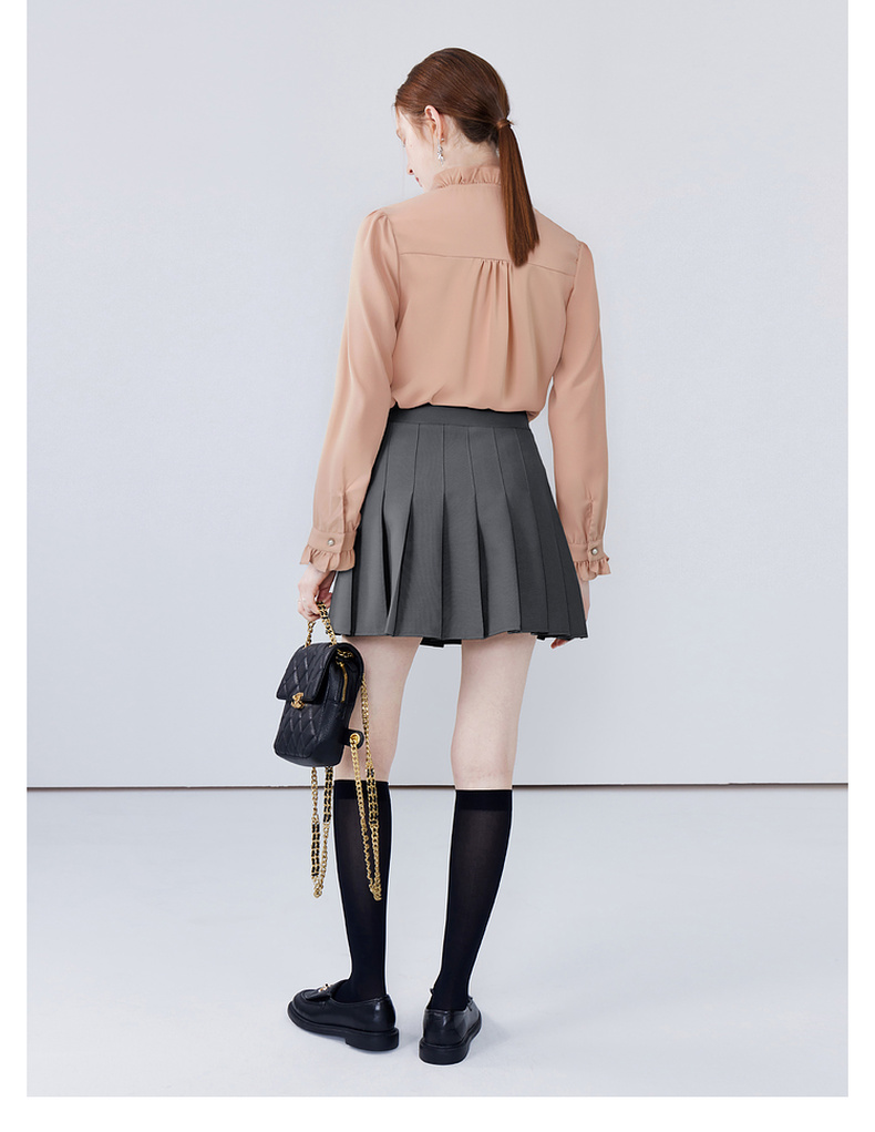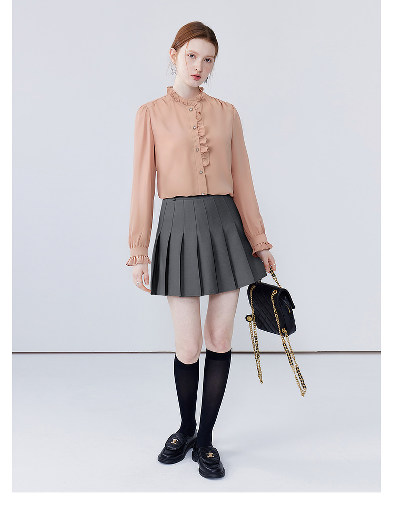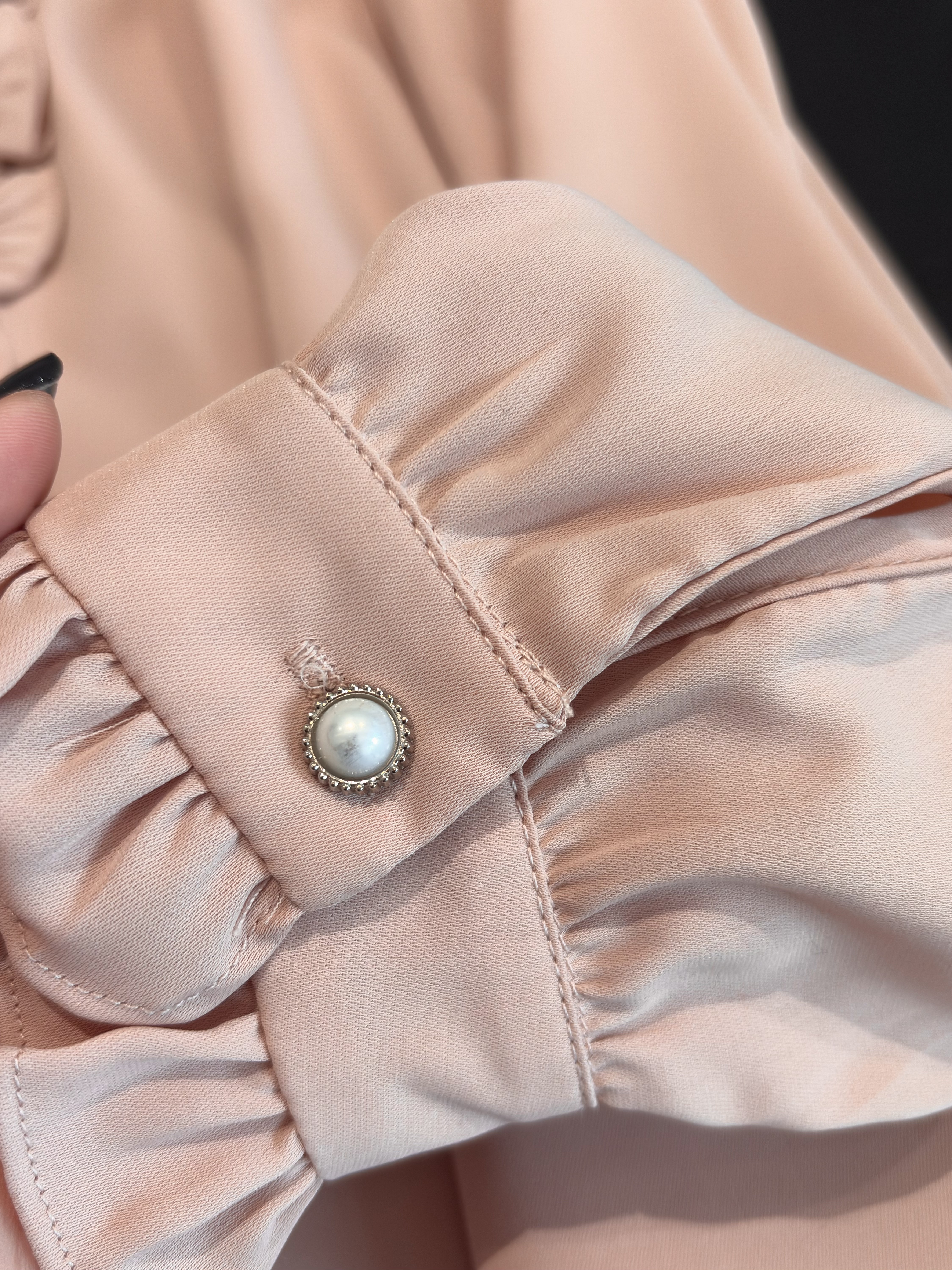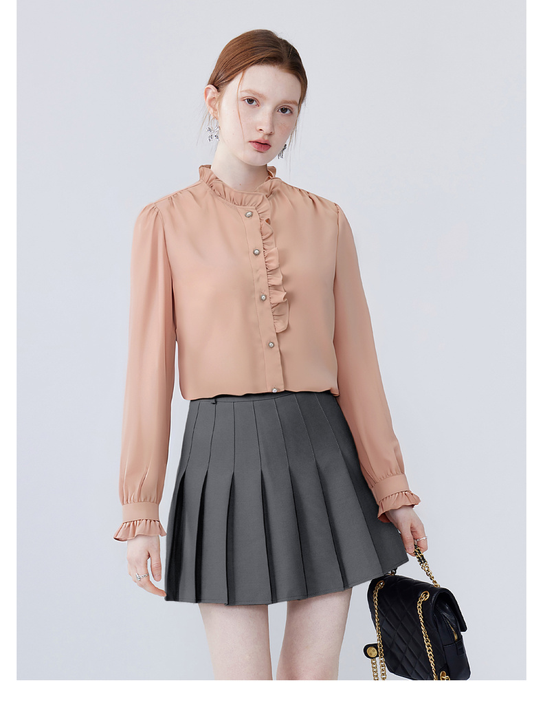 会员福利【顺滑/垂坠】拉夏贝尔/La Chapelle法式温柔甜美设计感小众木耳边门襟长袖衬衫女气质衬衣秋