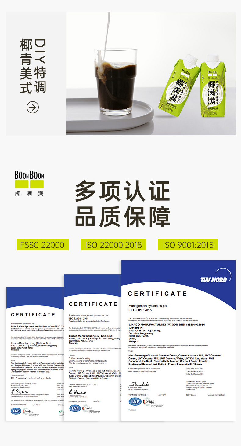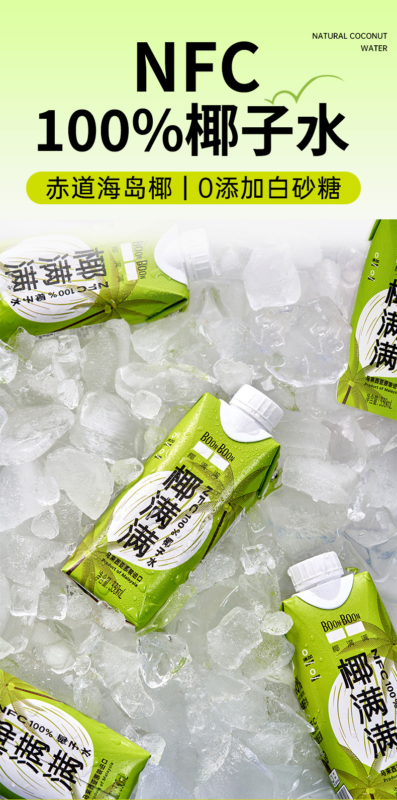 椰满满椰子水 马来西亚进口椰子水补充电解质 330ml/瓶