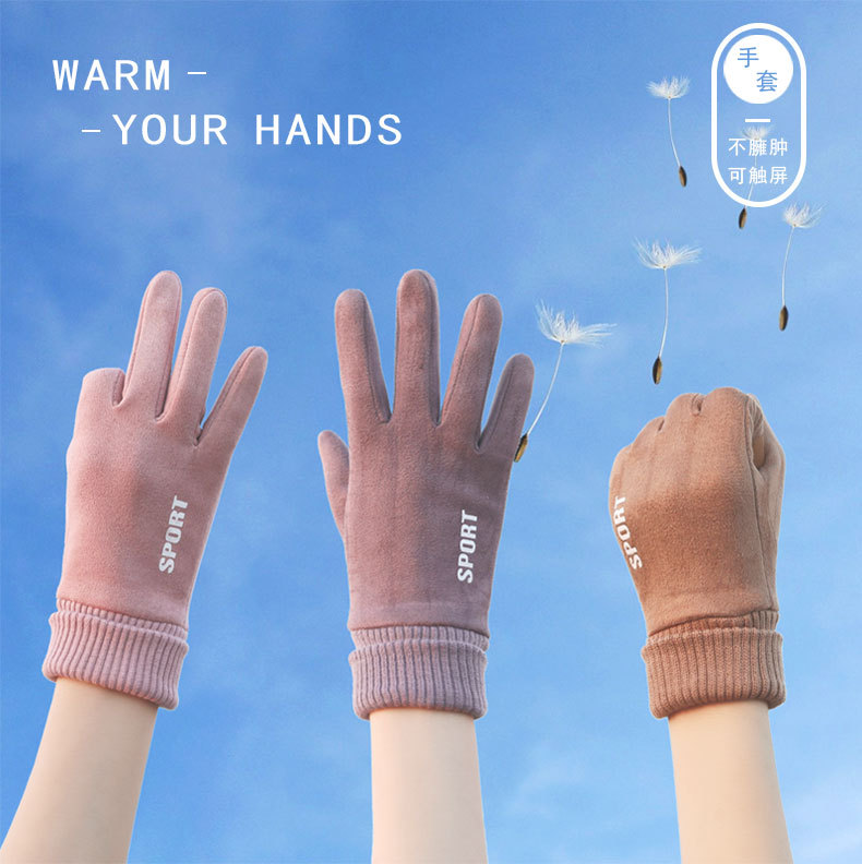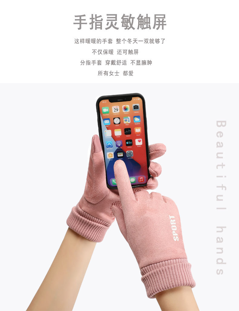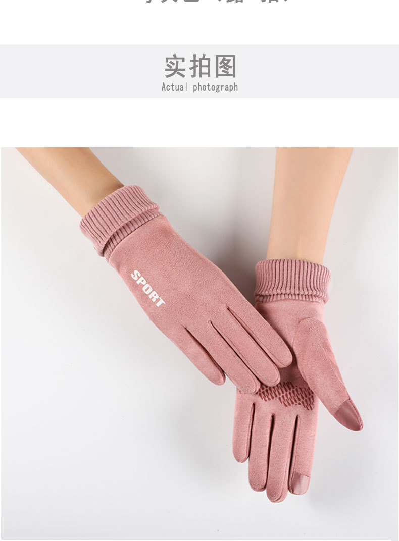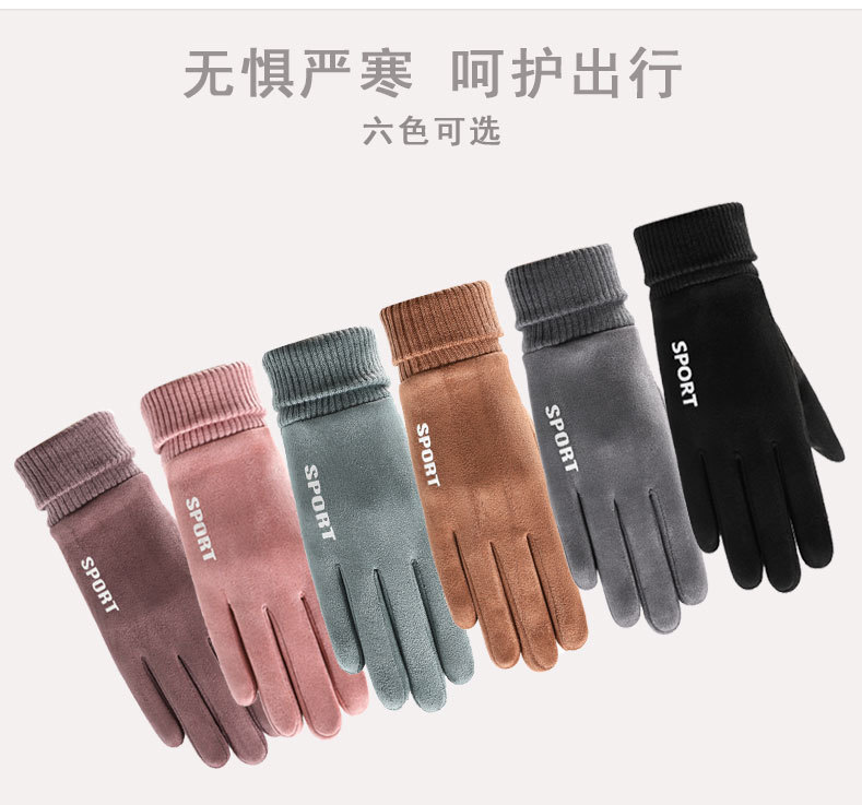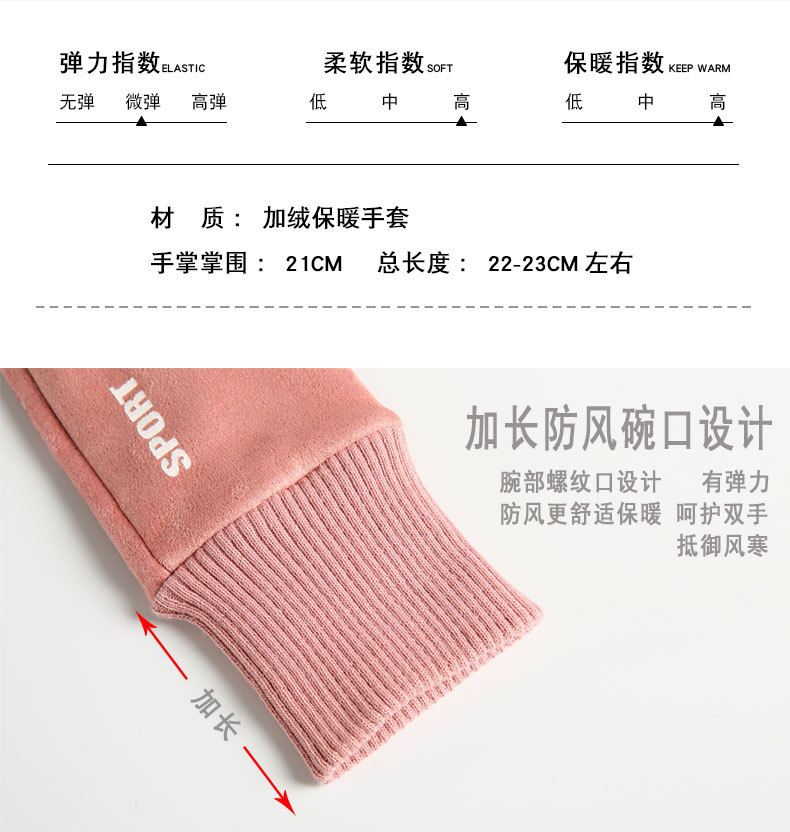 麂皮绒运动手套女士秋冬季户外骑行 保暖加绒触屏