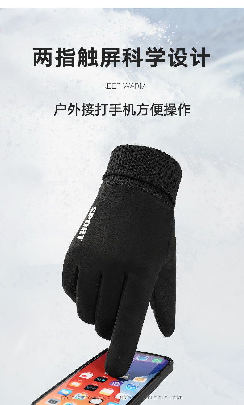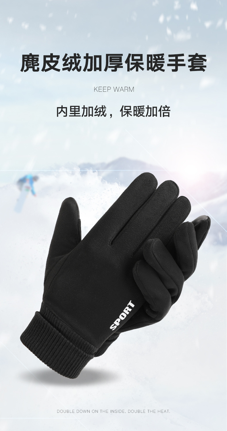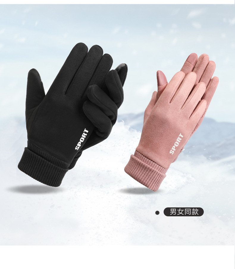 麂皮绒运动手套女士秋冬季户外骑行 保暖加绒触屏