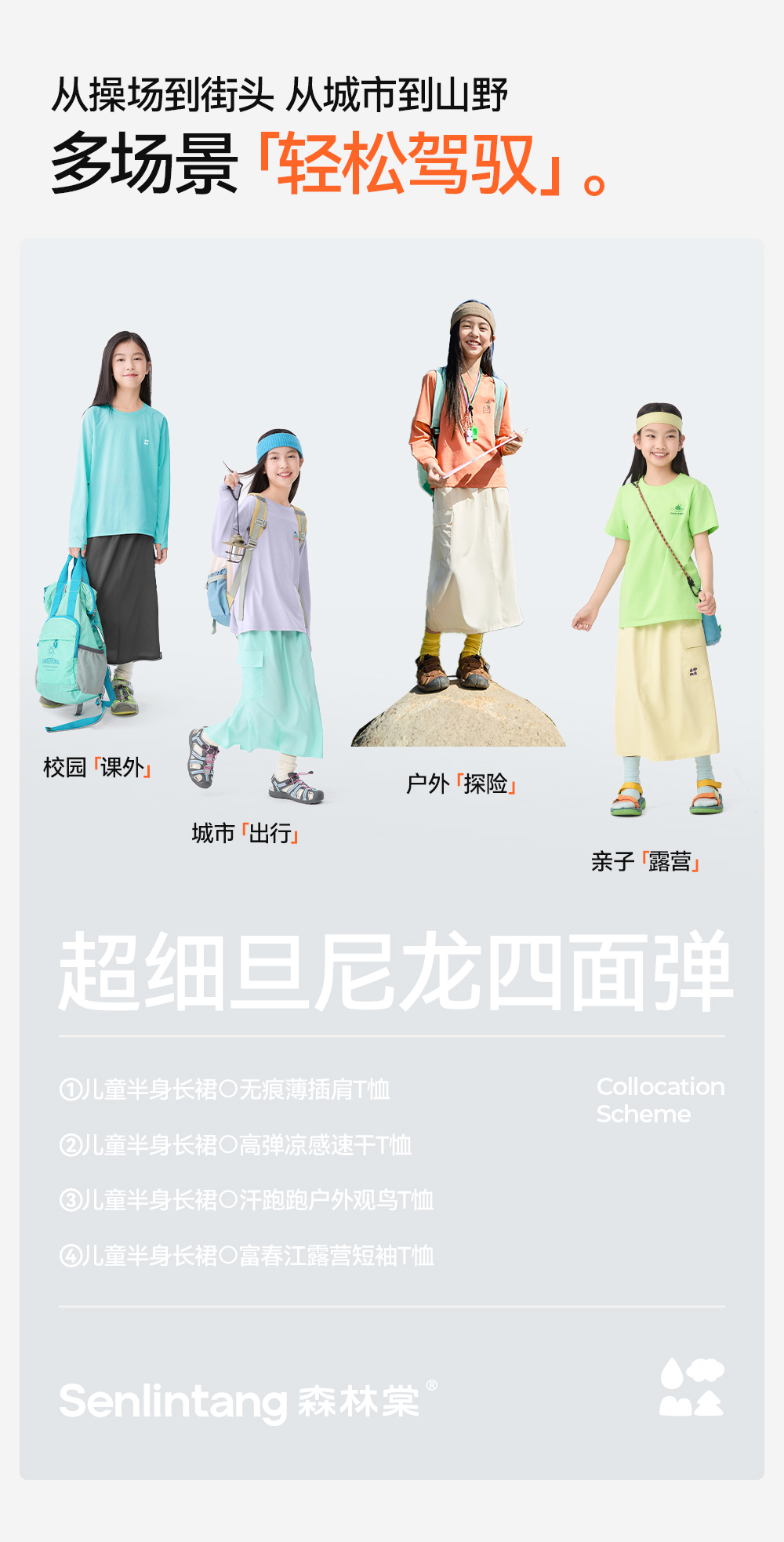 【儿童半身长裙】森林棠25夏款女童轻盈柔软抗皱高弹半身户外裙子41122518 商品图0