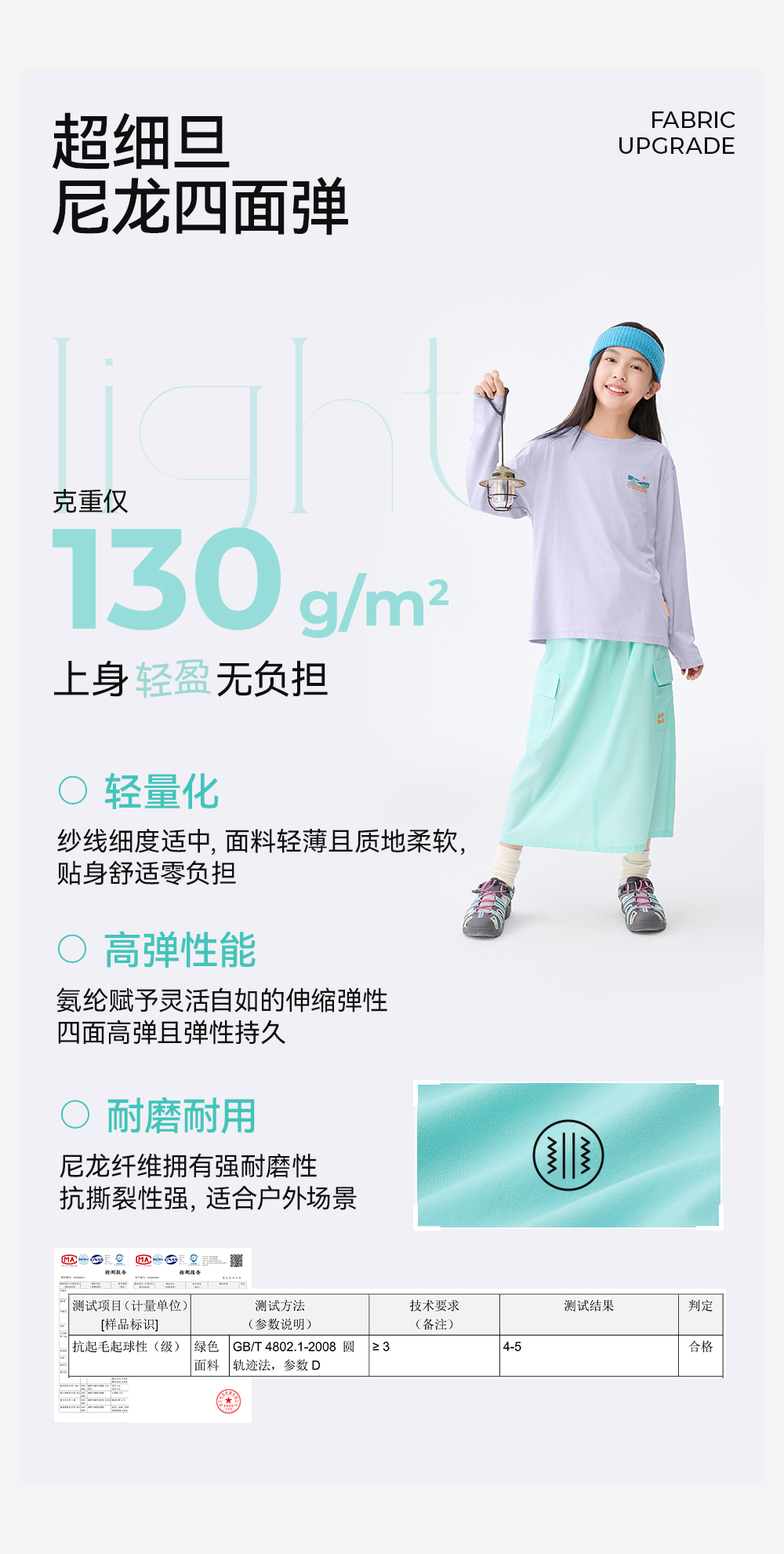 【儿童半身长裙】森林棠25夏款女童轻盈柔软抗皱高弹半身户外裙子41122518 商品图4