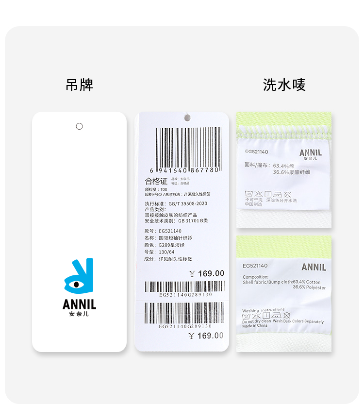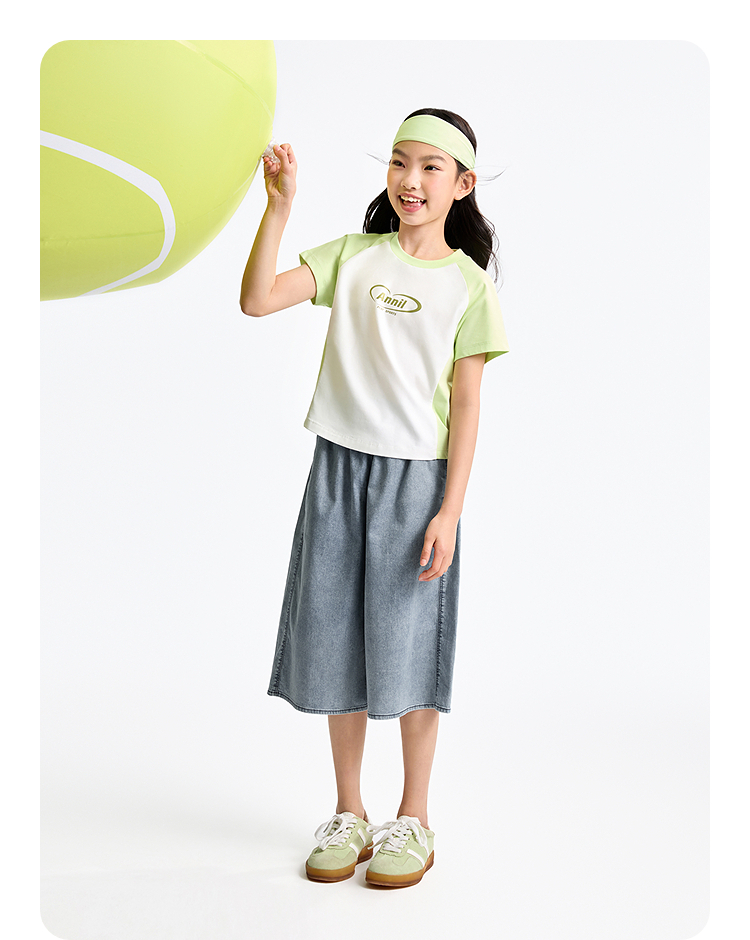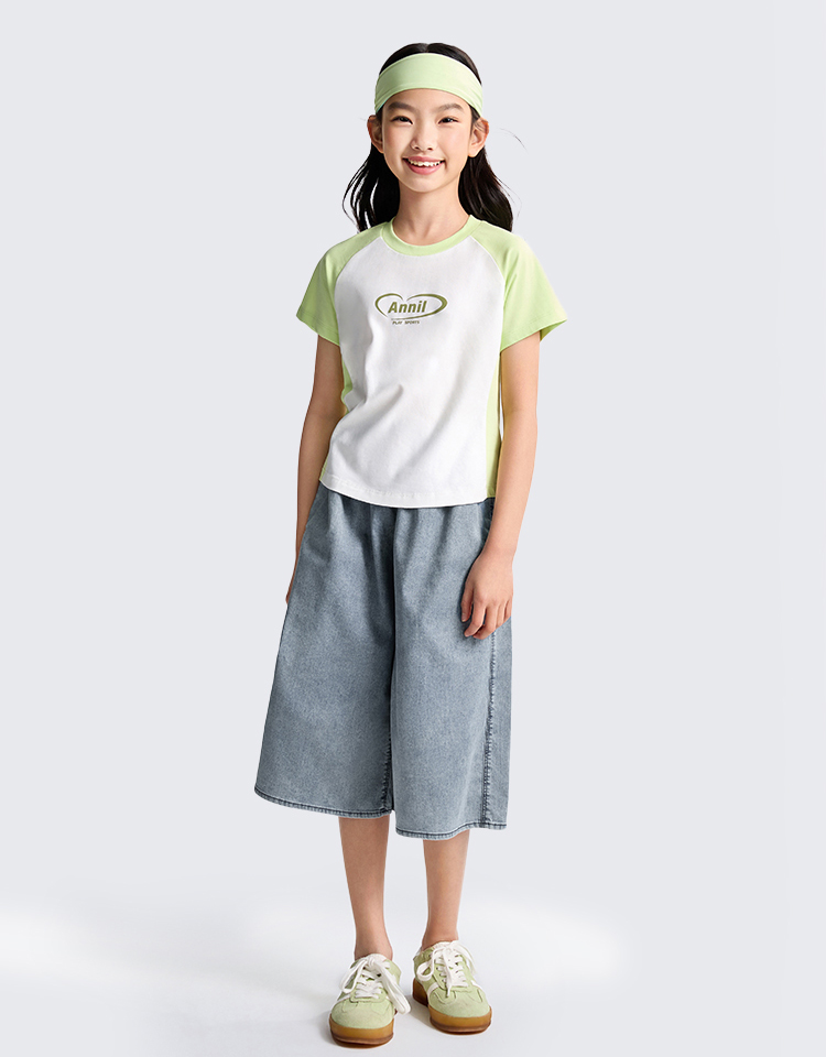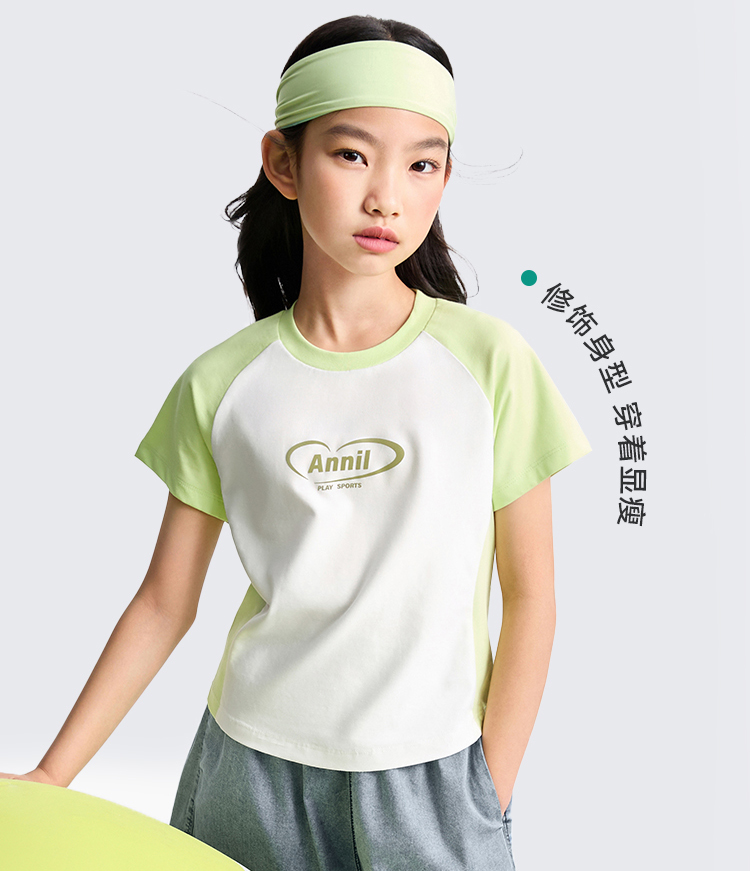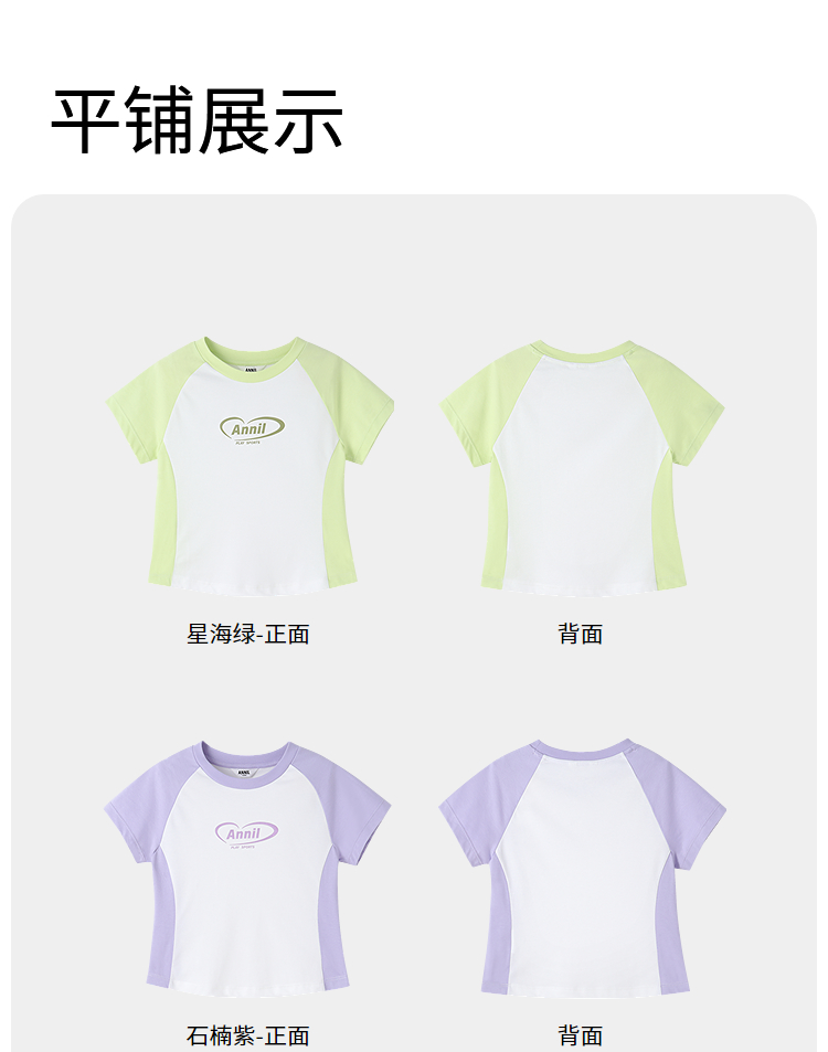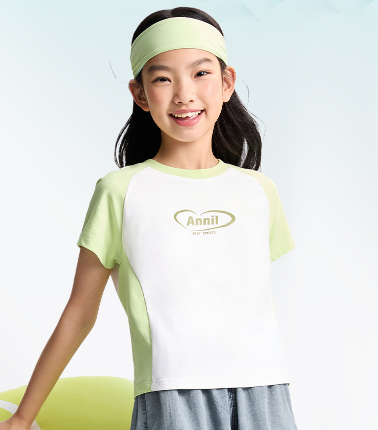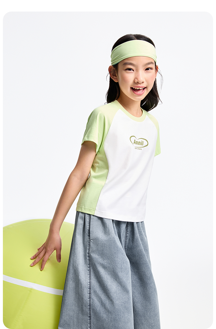 女童SORONA凉感圆领短袖针织衫夏季新款安奈儿童装EG521140