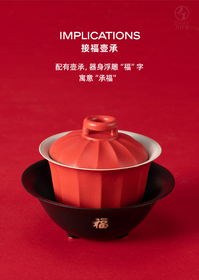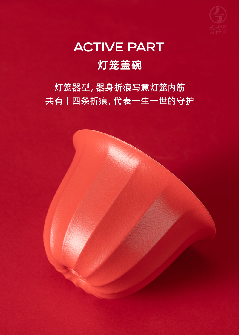 万仟堂 | 鸿运高照02·盖碗 茶具 国风陶瓷灯笼朱漆釉盖碗 礼品专供 朱漆釉