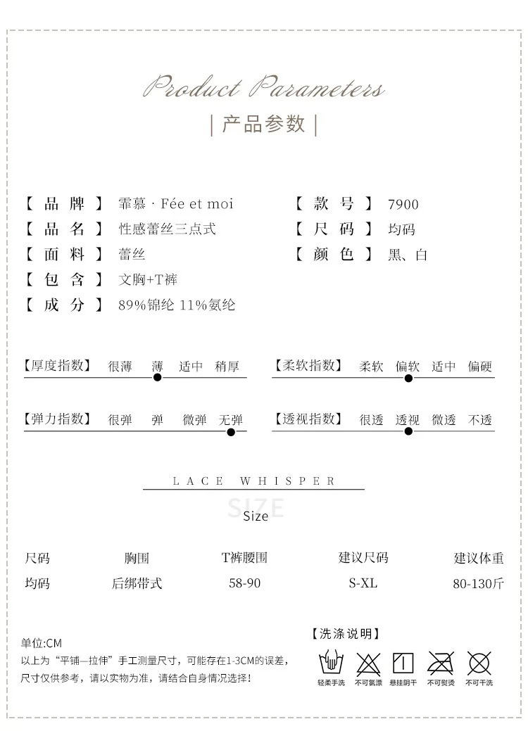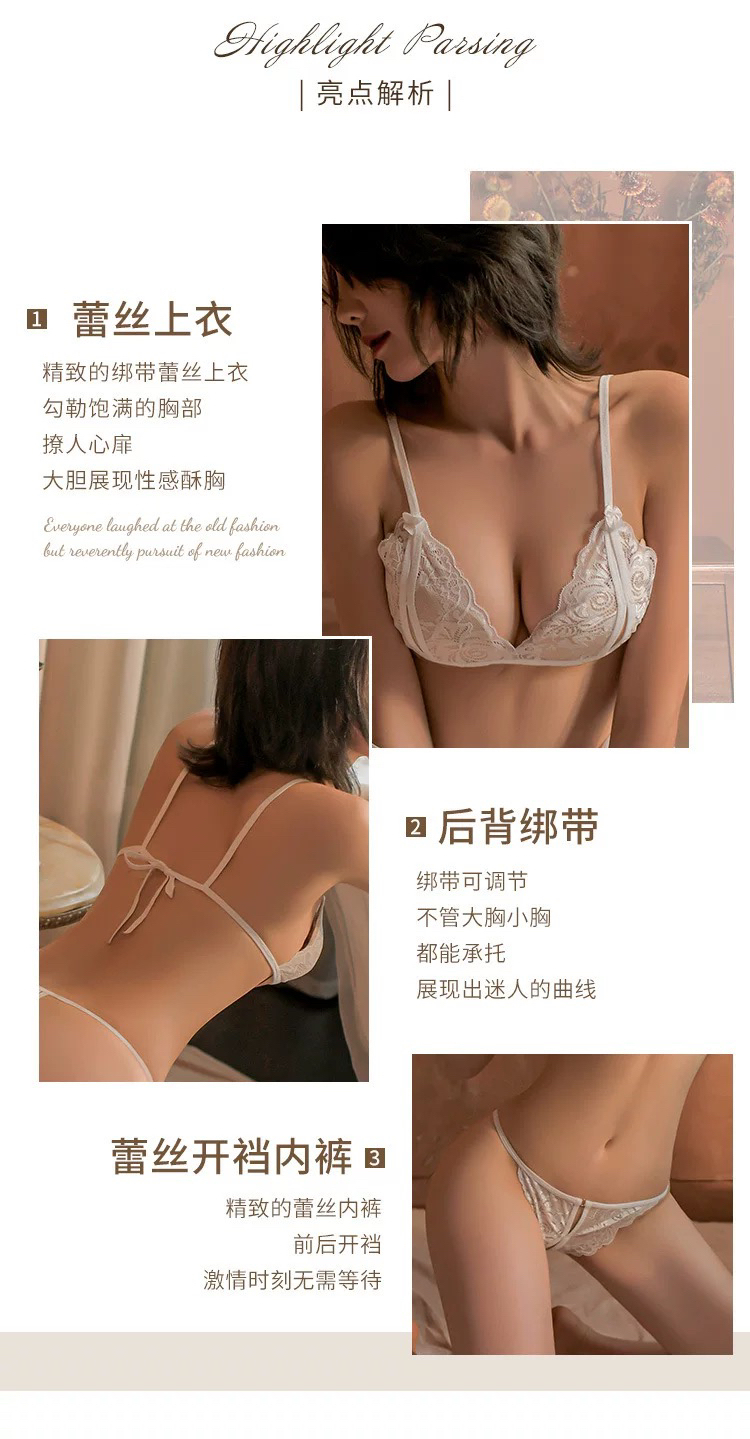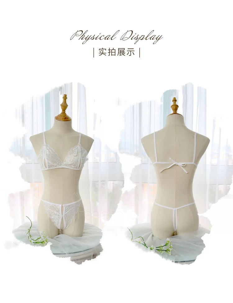 【年底亏本清仓 火热三点式】霏慕 三点式套装蕾丝性感开档丁字裤情趣内衣7900 白色