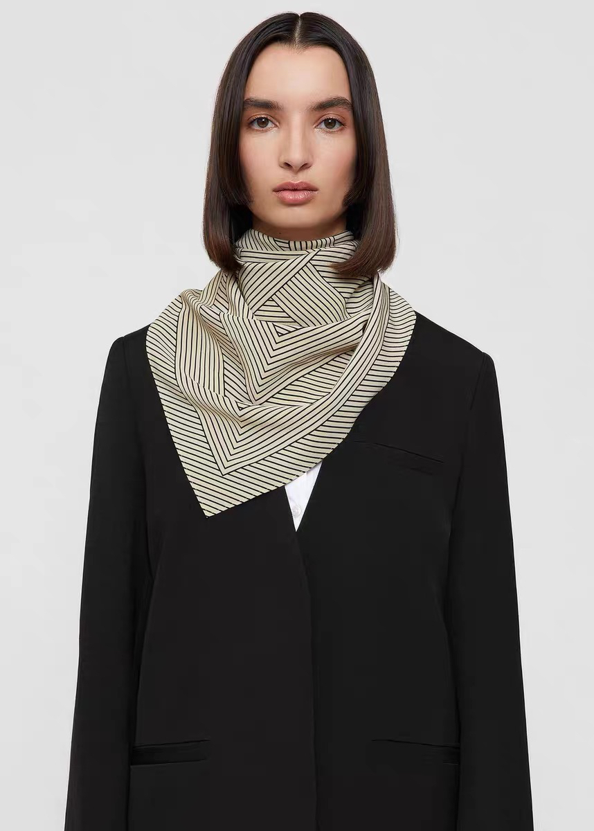 【甄珠贝·时尚高级感系列】100%桑蚕丝双绉北欧几何风条纹丝巾 90*90cm
