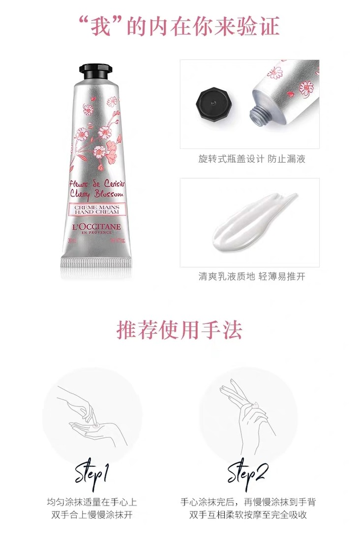 歐舒丹櫻花手霜150ML👍经典之作,TOP畅销星品,让你秒变护肤达人[嘿哈]含丰富乳木果油、甘油及维他命E,触感轻薄,轻盈丝滑,有效滋养、柔肤,使你四季享受备至呵护🌱清新淡雅的气味,甜美沁人芬芳,让少女无法抵抗🌸还有独出心裁的法式精美包装,手绘樱花设计。用一次你就会爱上Ta💕