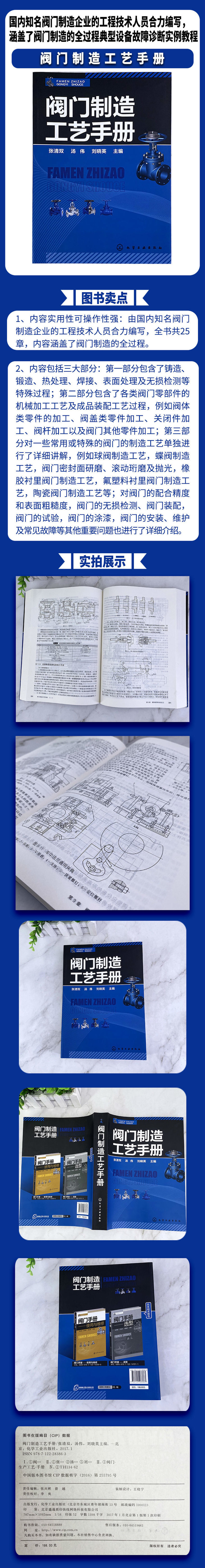 1 内容实用性可操作性强:由国内阀门制造企业的工程技术人员合力编写,全书共25章,内容涵盖了阀门制造的全过程