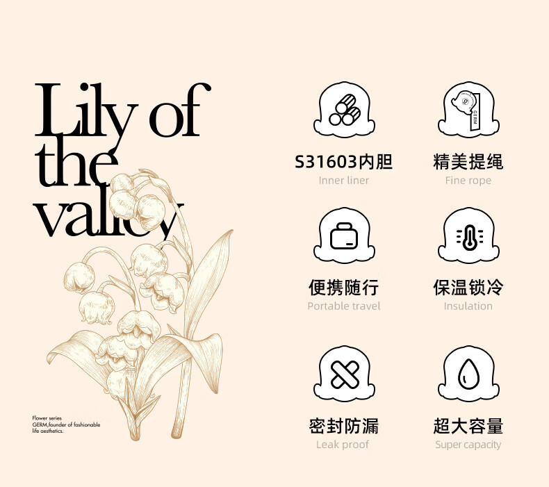 【安达联帮&格沵&仅限快递】铃兰闪耀保温杯GE-23AW-B47(厂家直发)