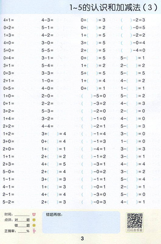每天100道口算题卡 计时测评 一年级上册(RJ版)彩绘版 开明出版社