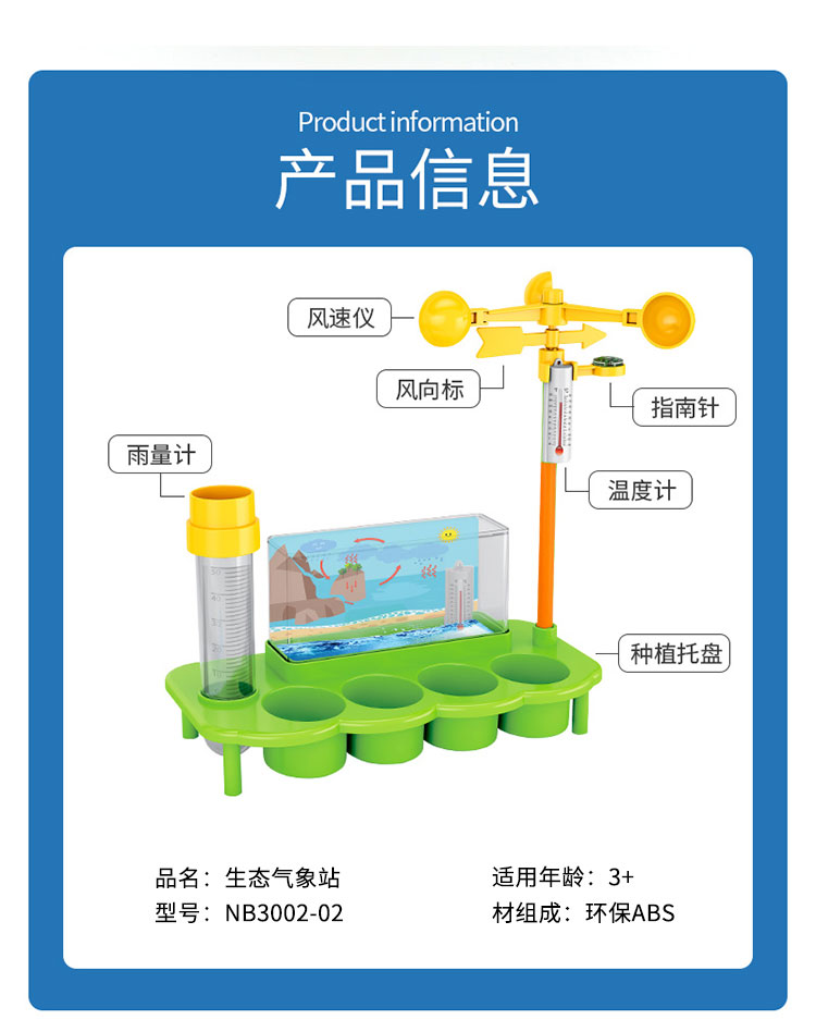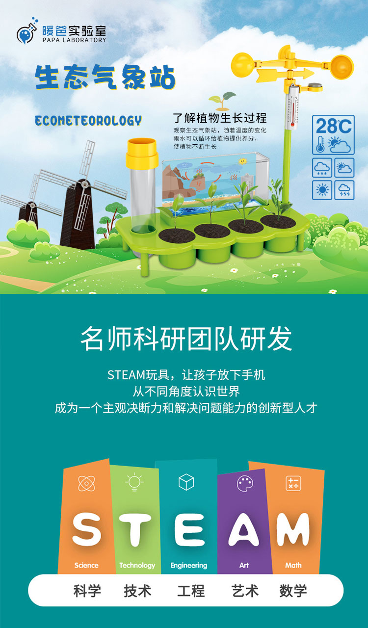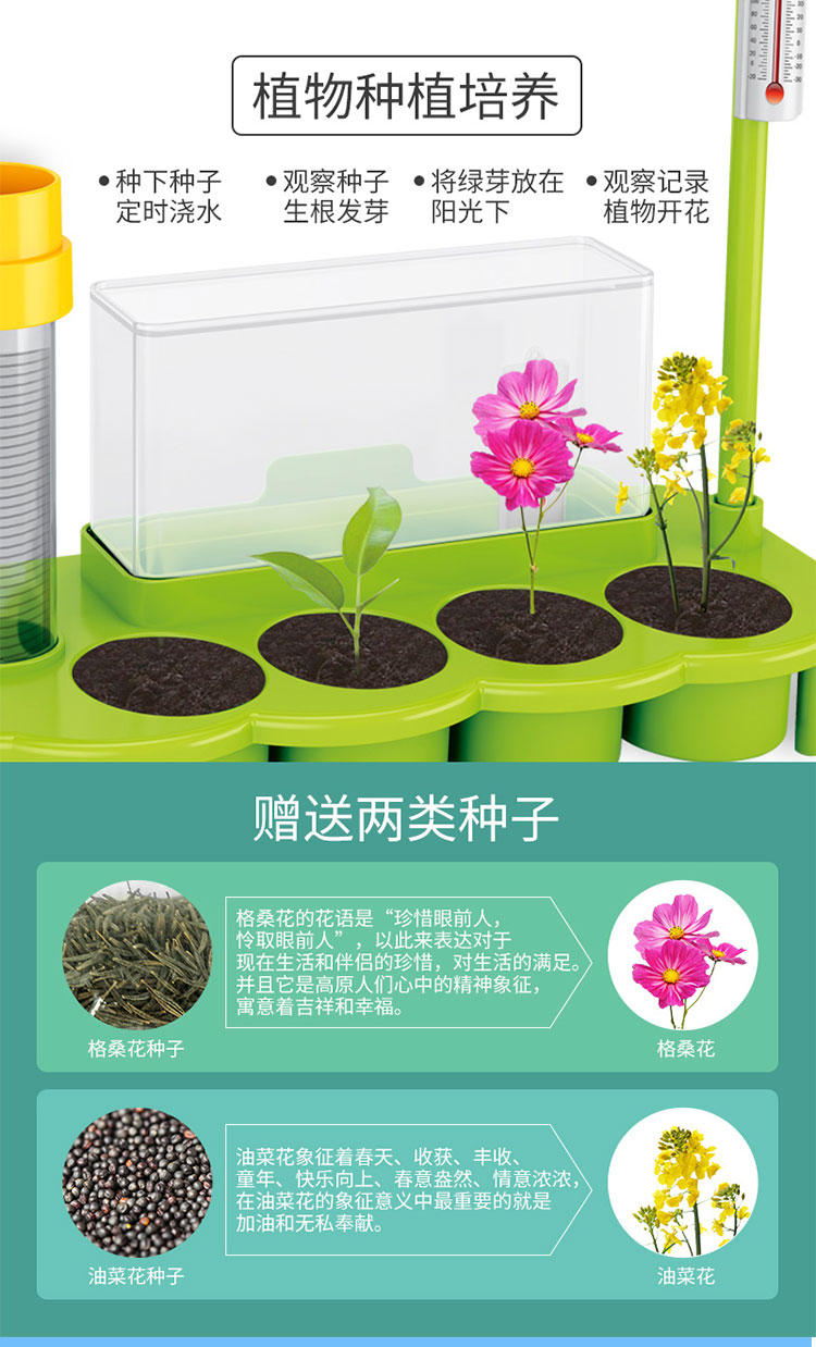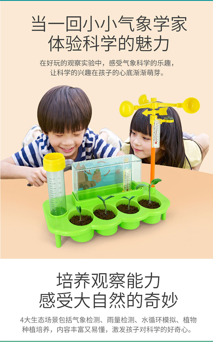 暖爸 儿童生态气象站植物培育温度雨量风力观测男孩女孩幼儿园学生小盆栽种植观察玩具