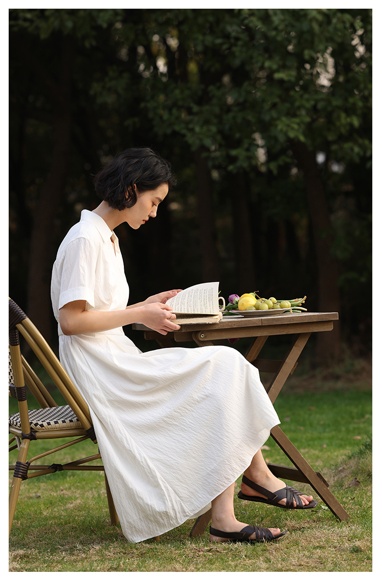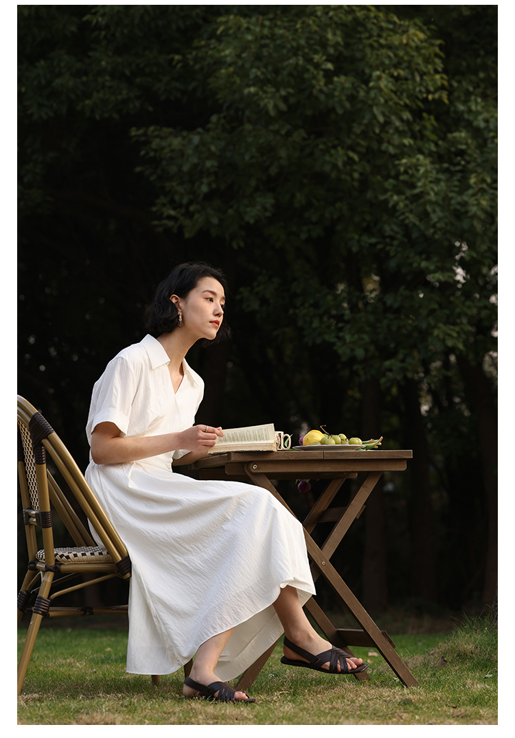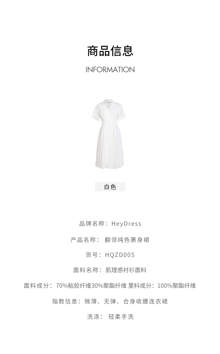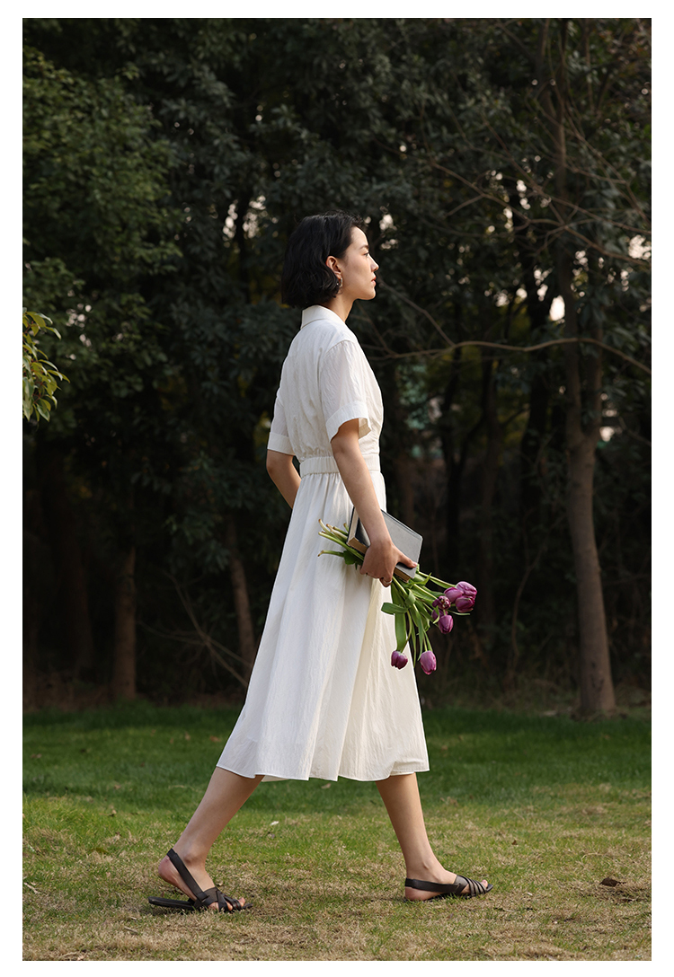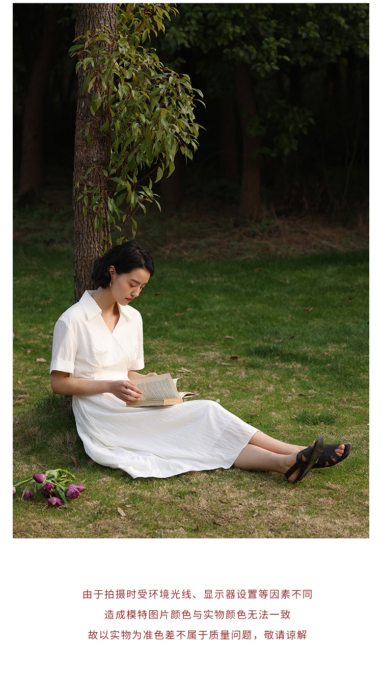 HeyDress法式衬衫连衣裙女夏季复古V领收腰白色肌理感气质初恋裙