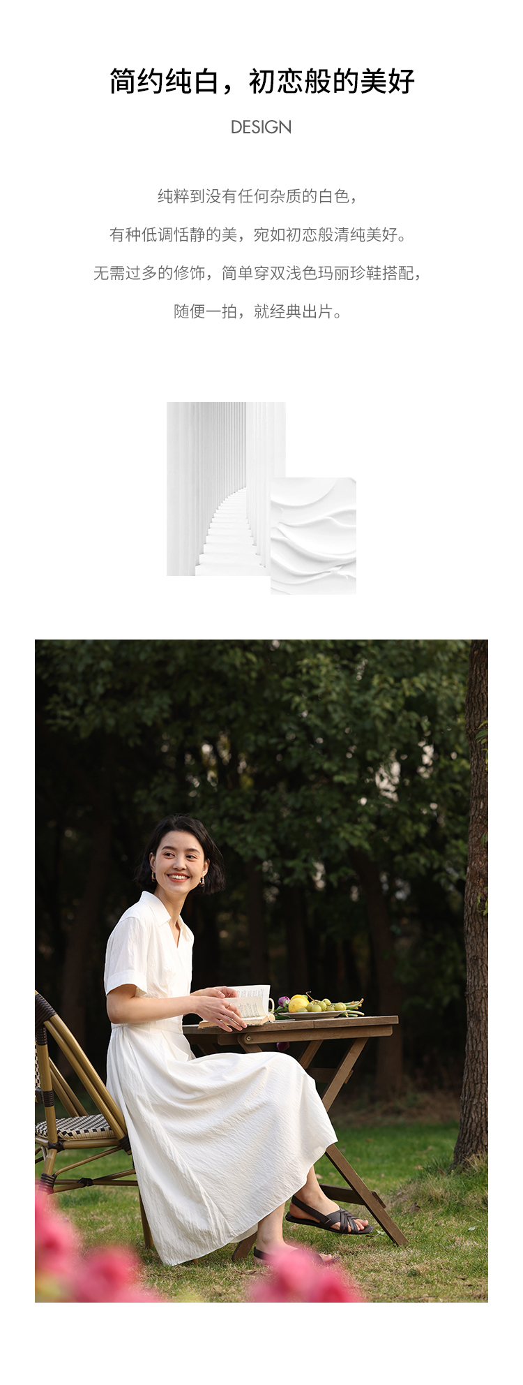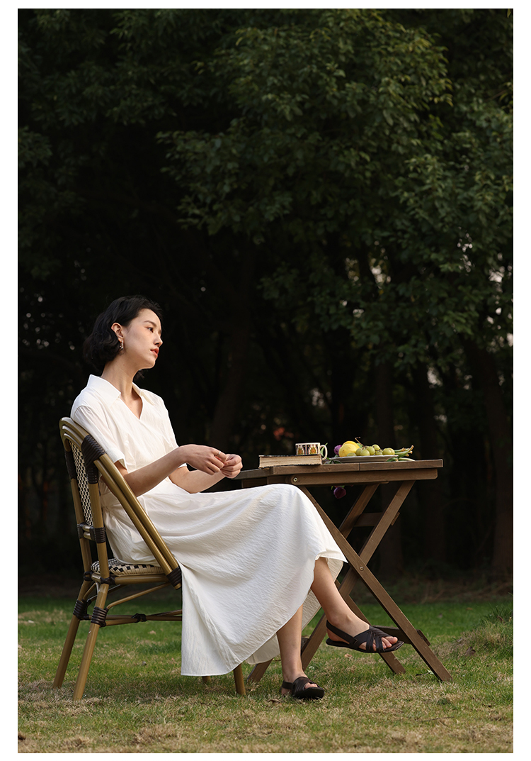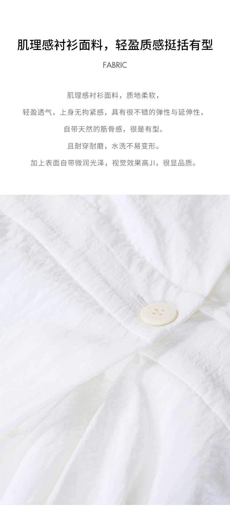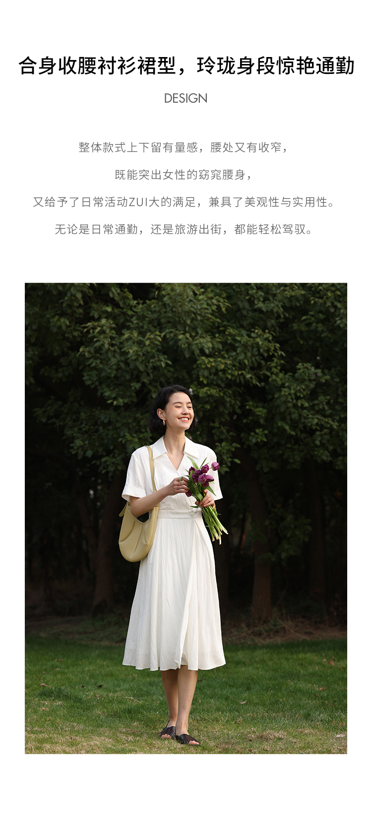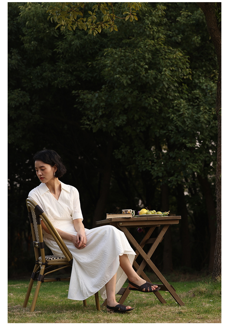 HeyDress法式衬衫连衣裙女夏季复古V领收腰白色肌理感气质初恋裙