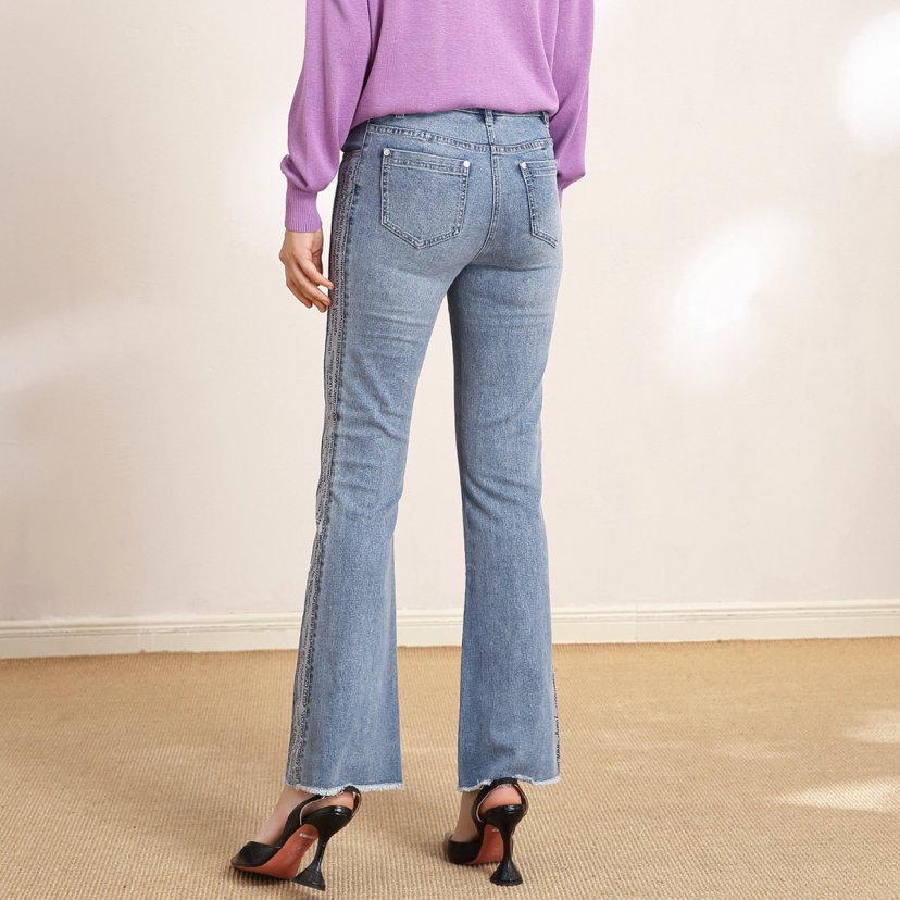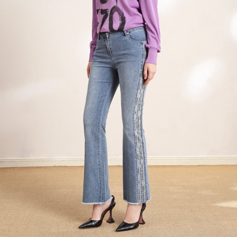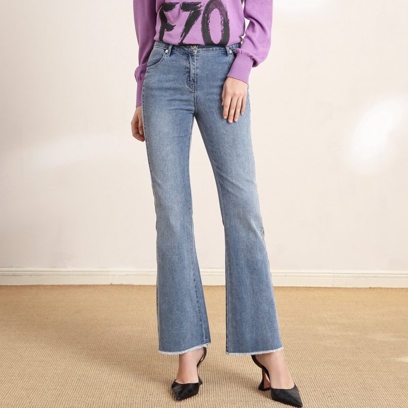 裘堤婼JETEZO高腰显瘦牛仔裤喇叭裤 BB1EC323B1