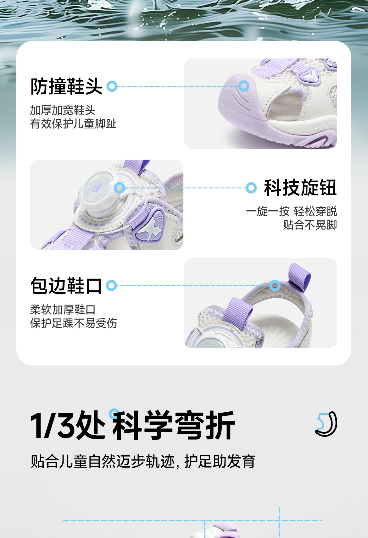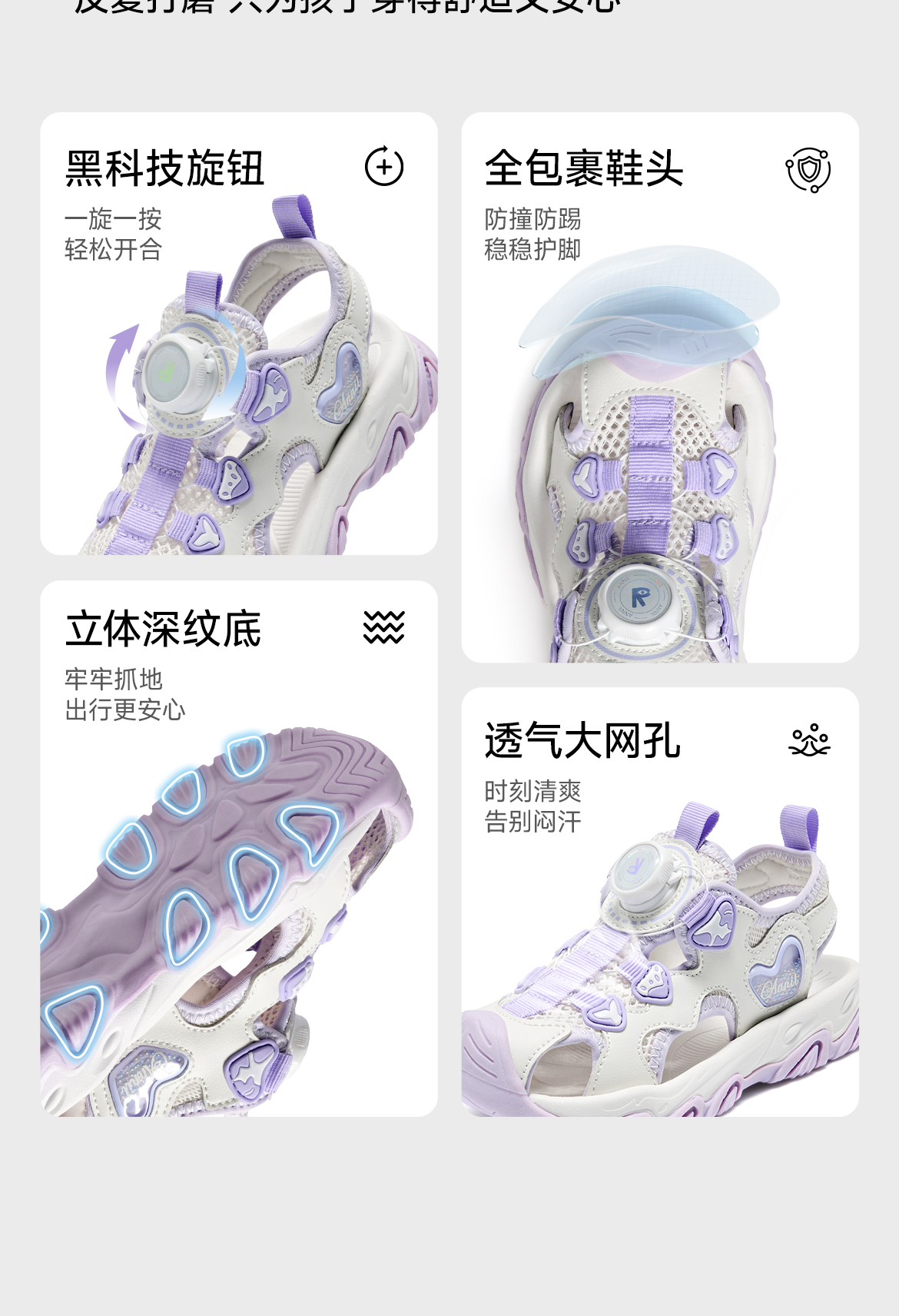 ANNIL/安奈儿童鞋女童夏季运动包头凉鞋鞋子宝宝沙滩鞋HG6206789