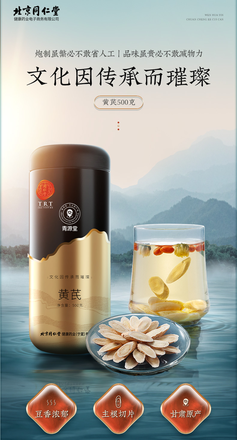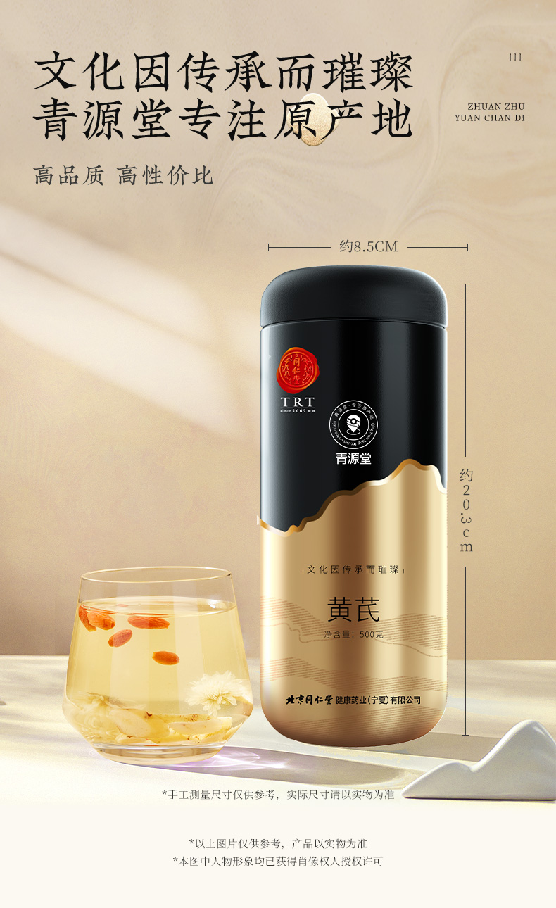 【正宗同仁堂品牌】北京同仁堂 青源堂 黄芪500克 严选甘肃黄芪 精切工艺 大小均匀 多层锁鲜SY