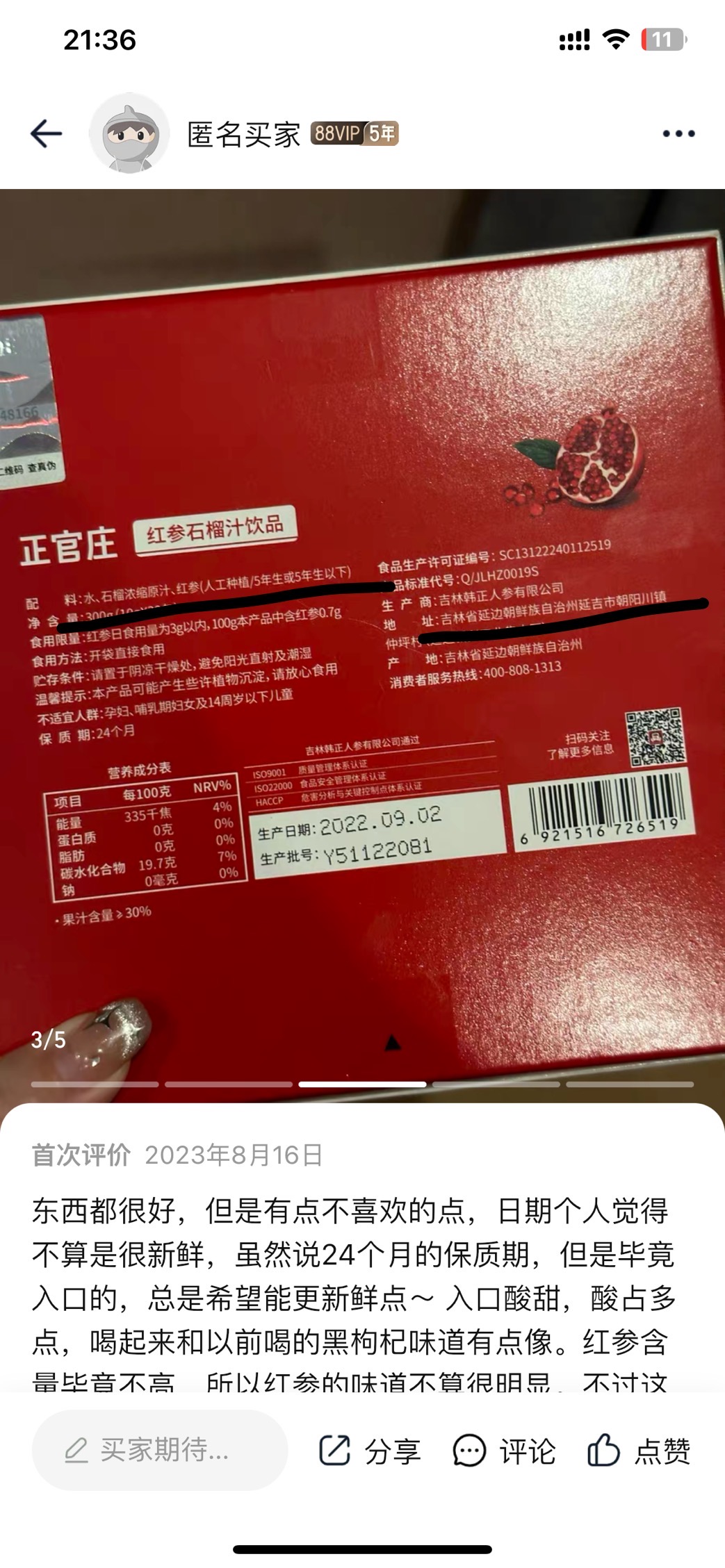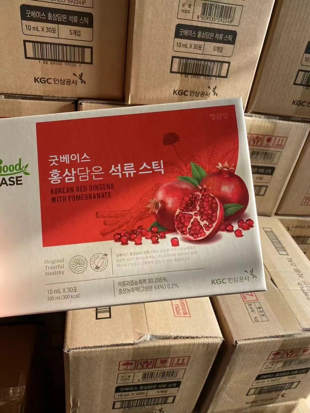 一盒30条!都这价格份上了,建议大家一天2条!不仅抗疲劳还能美容养颜、调节内分泌、补气血 以前动不动人就累了,这个还能抗疲劳,活力满满!一盒30条!每天1-2条 我们是韩国本土版,跟国内在卖的不一样,我们全韩文的,用的是韩国6年高丽参,国产在卖的正官庄用的是5年内的吉林人参!不一样的! 国产的正官庄是中文版的,用的参是五年以内的吉林人参!我们用的是韩国正宗6年以上的高丽参!今天出最低价的一批正官庄红石榴饮,日期到25.8!最低价的一批正官庄!我们是韩国本土版!选用的参都是6年高丽参