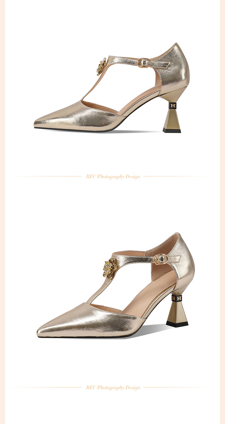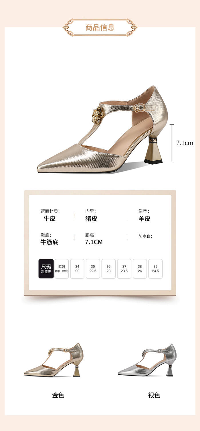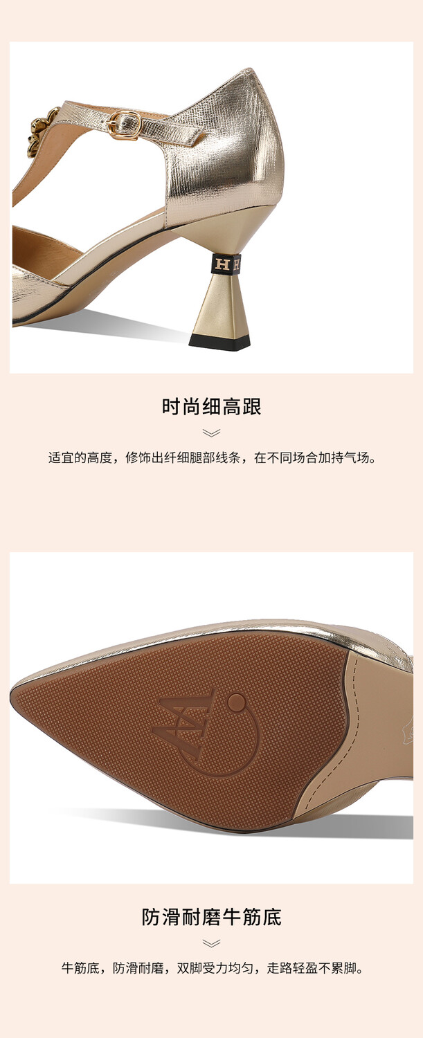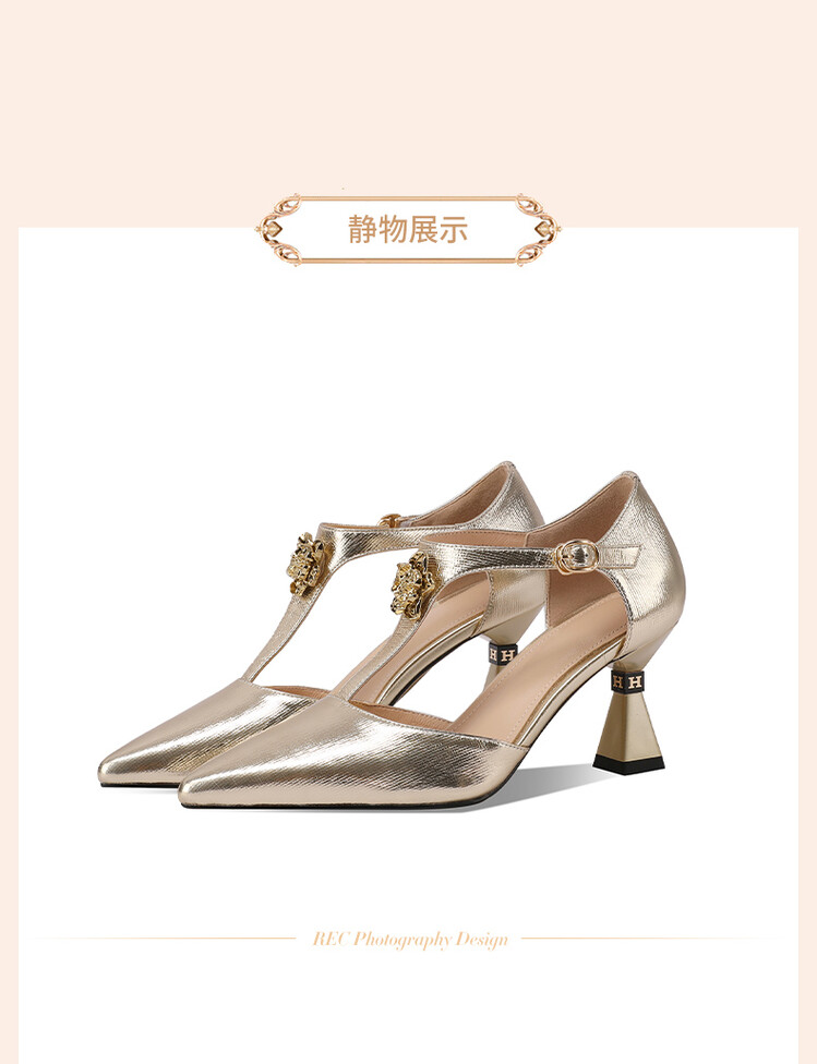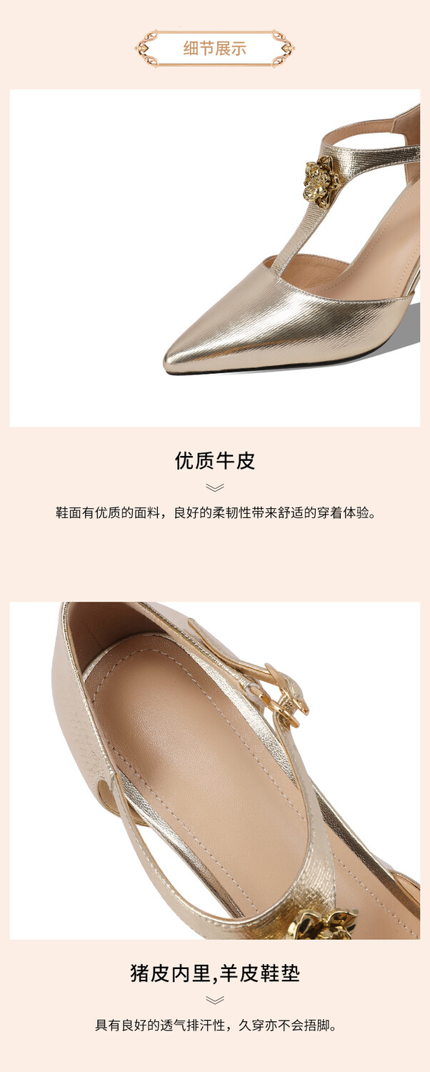 【预售5天】优雅性感尖头花朵中空包头镂空T字扣配裙子裤子百搭时尚单鞋HY&H3399